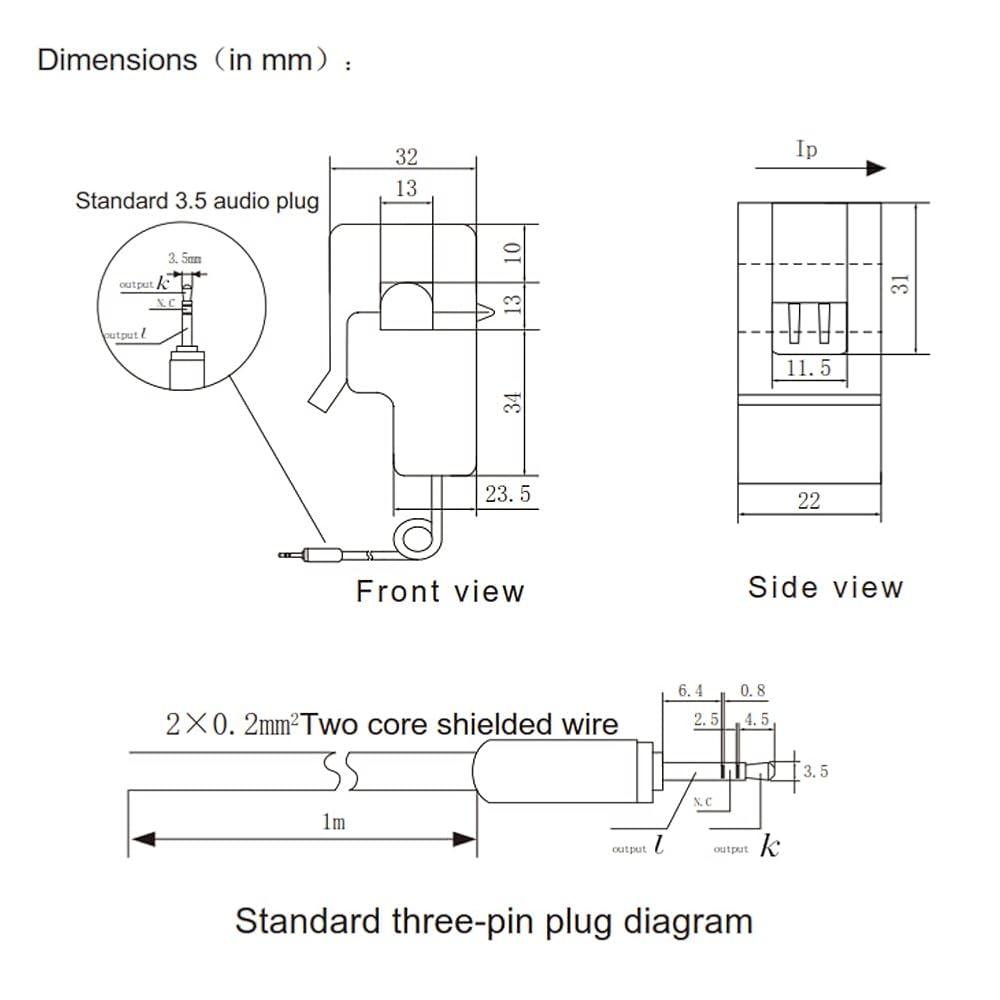 - Split-Core Current Transformer Size: 56*32*21mm, Weight: 72g, Leading Wire in Length: About 1m.