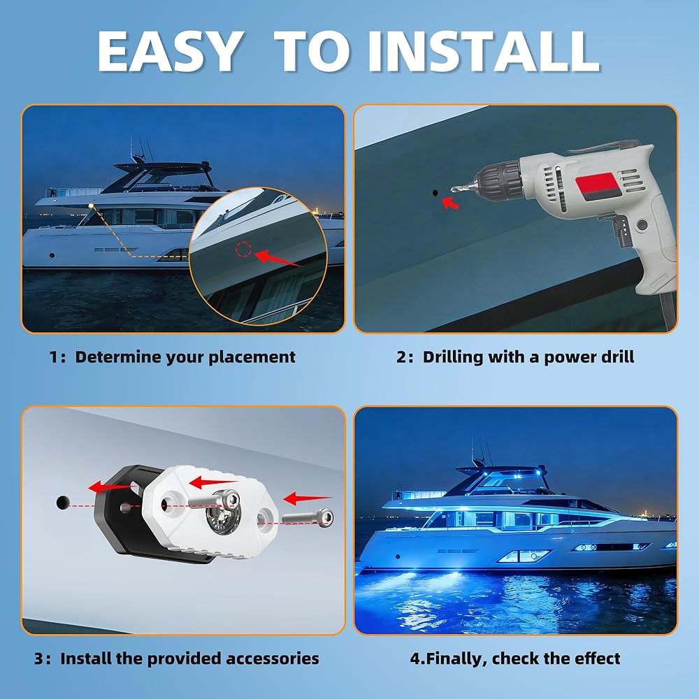 • إعداد STRESSNTREE: مصابيح LED البحرية متوافقة مع أنظمة الطاقة DC 9-36V. مصابيح LED للقارب هذه سهلة التركيب: ما عليك سوى توصيل السلك الأحمر بالسلك الموجب والسلك الأسود بالسالب. يشتمل كل مصباح على حشية مطاطية ومسامير من الفولاذ المقاوم للصدأ للتركيب المرن على أي سطح مستو.