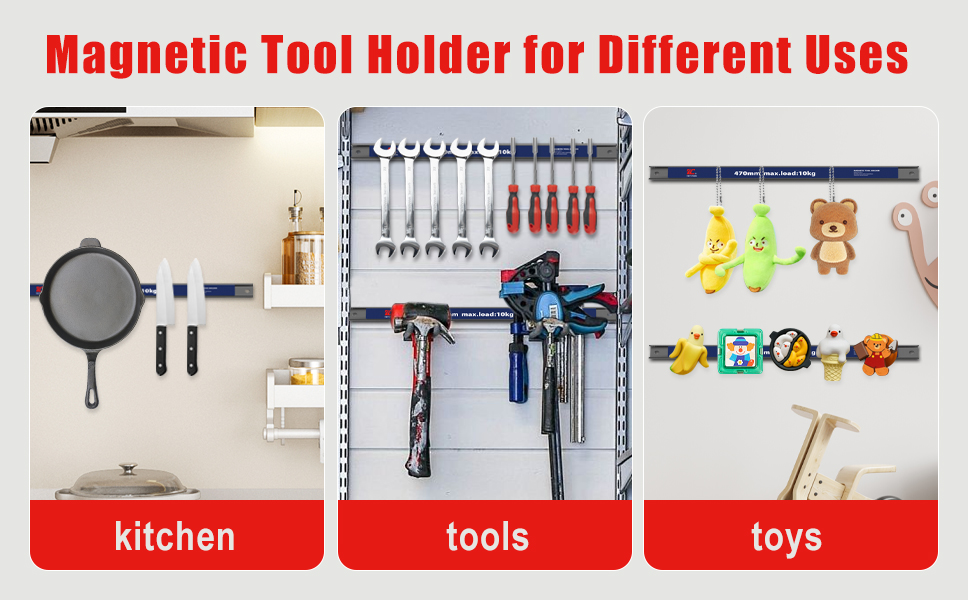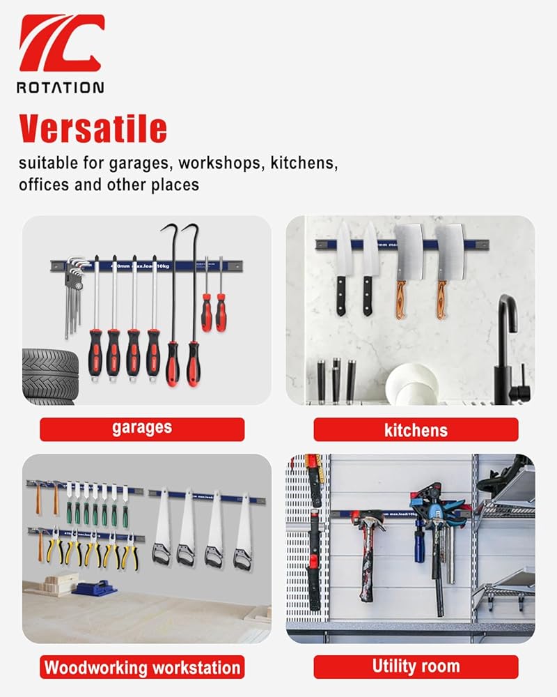 استخدامات متعددة: مثالية للجراجات وورش العمل والمطابخ، فهي تحمل بشكل آمن أدوات مثل المطارق وشفرات المنشار وحتى سكاكين المطبخ أو الملاعق.