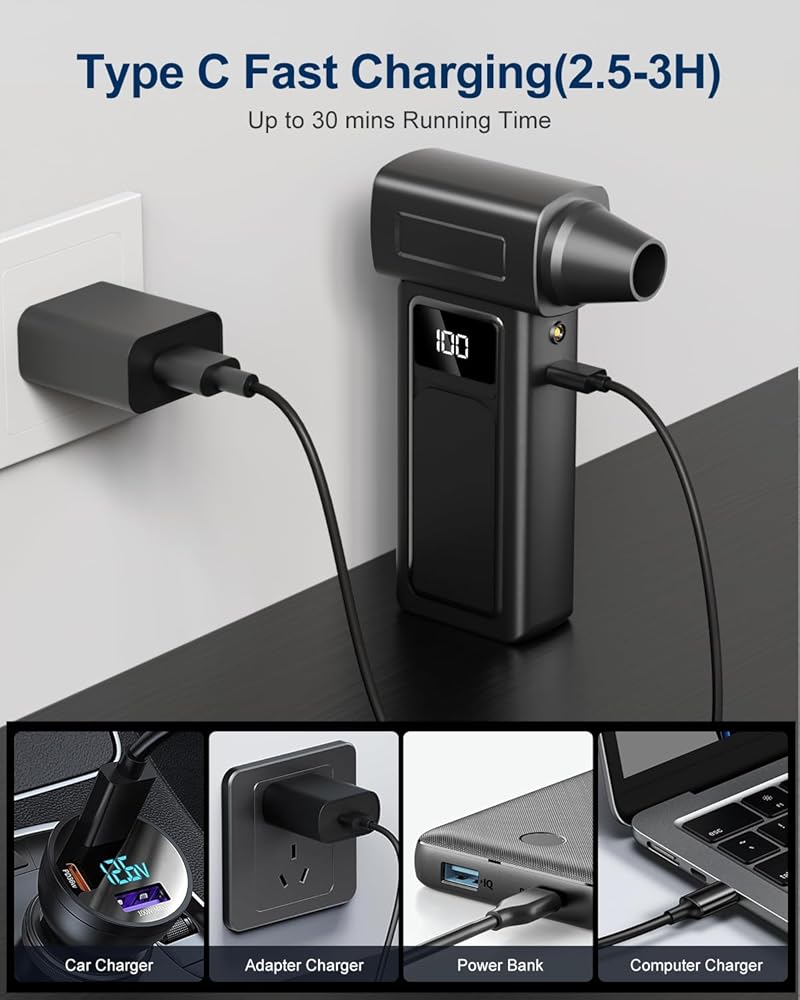 🔋 【شحن سريع بقوة 10000 مللي أمبير في الساعة وحرية لاسلكية 】 → 【 شحن سريع بقوة 10000 مللي أمبير في الساعة لمدة 90 دقيقة - استخدام السيارة والمنزل 】 بطارية رائدة في الصناعة بقدرة 10000 مللي أمبير في الساعة تدعم وقت التشغيل المستمر لمدة 90 دقيقة على السرعة المنخفضة. شحن سريع عبر USB-C عبر السيارة/الكمبيوتر المحمول/بنك الطاقة يتم شحنه بالكامل خلال 90 دقيقة؛ تكلفة استبدال صفر مقابل علب الهواء المضغوط - توفر أكثر من 200 دولار سنويًا للمستخدمين المتكررين؛