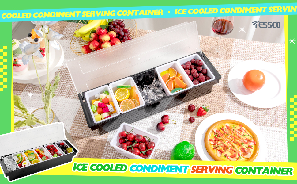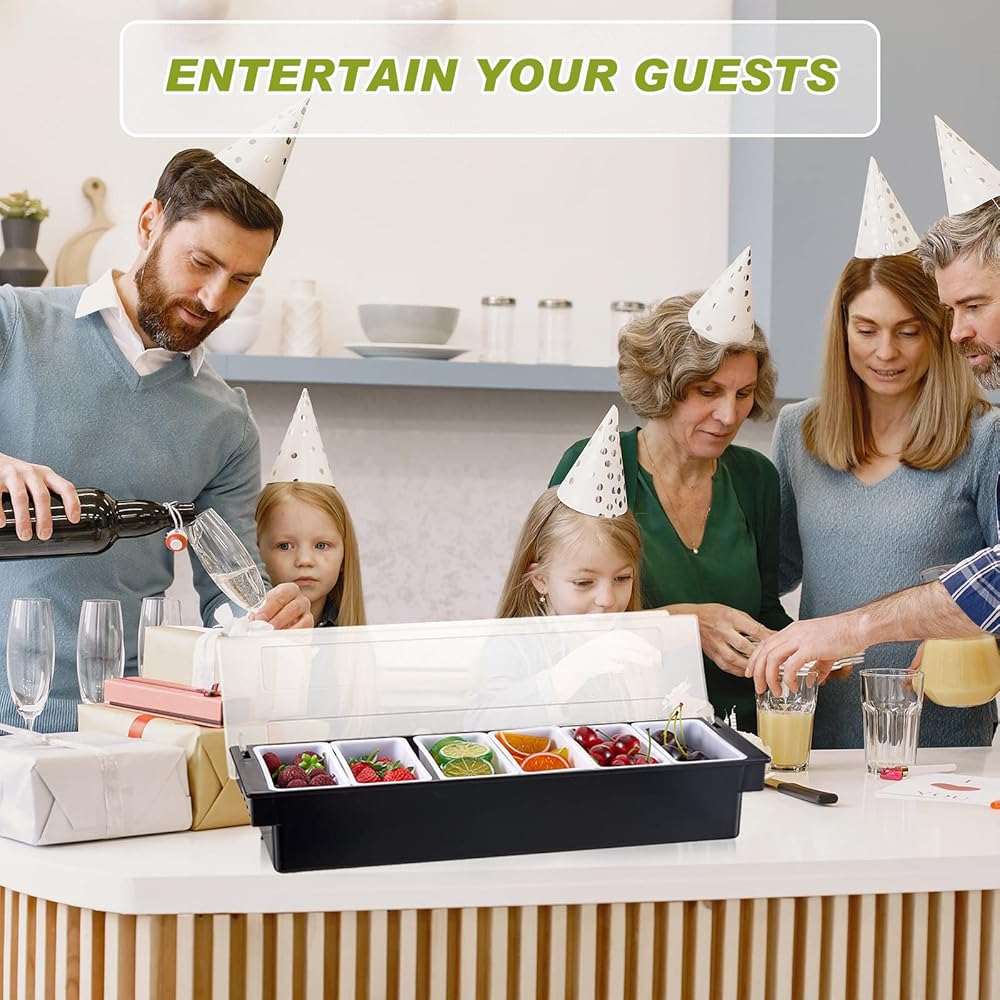 2 قطعة من علبة الفاكهة مع غطاء سلطة بهار، صينية تزيين بلاستيكية سوداء، علبة بهارات مبردة بالثلج للمنزل، مطعم، تقديم الطعام، لوازم حفلات سلطة تاكو الخضروات (6 مقصورات)