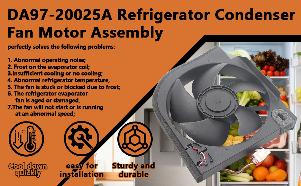 استبدال محرك مروحة المكثف DA97-20025A لجهاز Samsung RF27T5241SR، RS22T5201SR، RS27T5200SG، RF32CG5400SR، استبدال PD00076495، 4962138، AP6883701، PS12720104