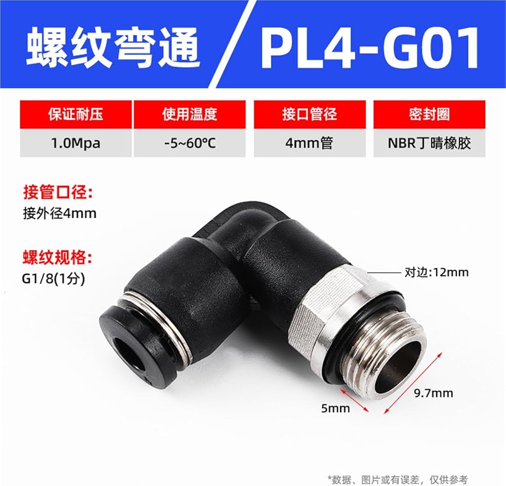 PL أسود/أبيض ثنائي الاتجاه G-الخيط على شكل حرف L الزاوية اليمنى الكوع المقابس السريعة موصل هوائي 1 قطعة (PL4-G01)