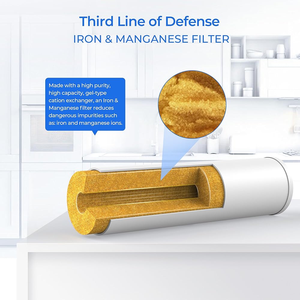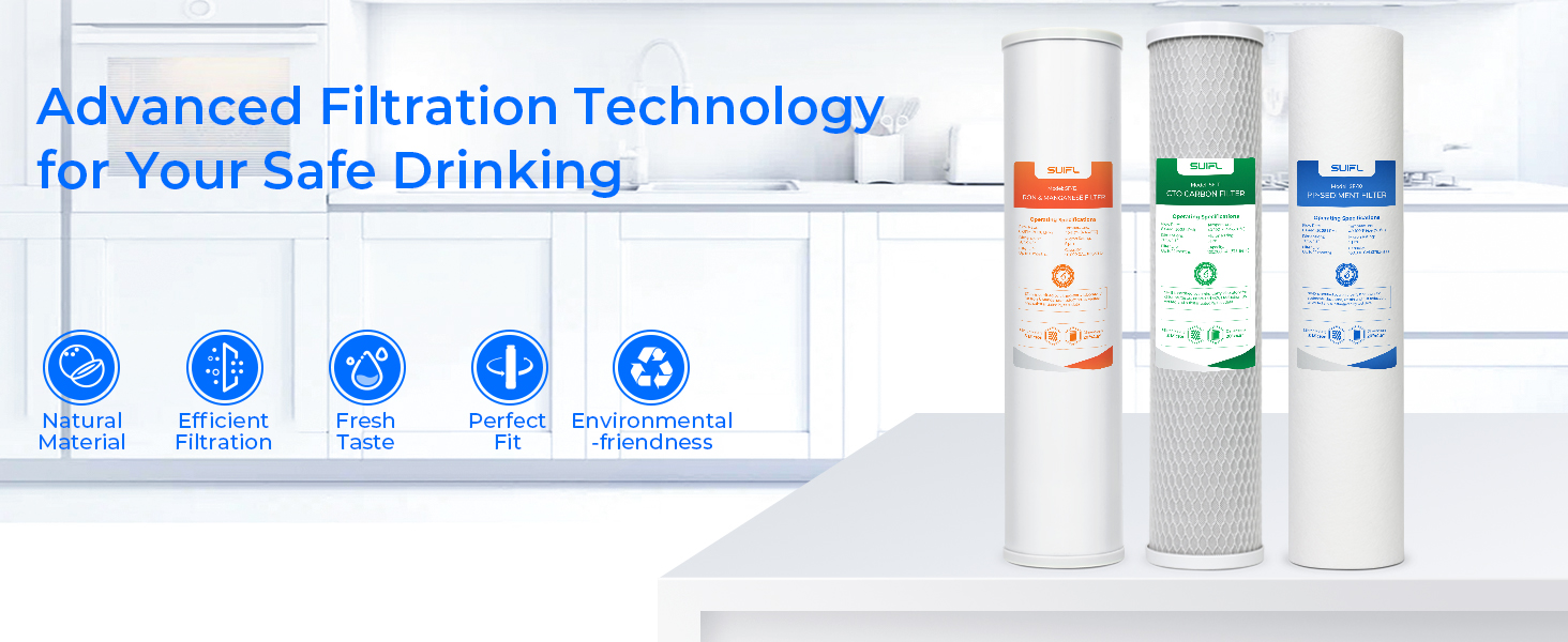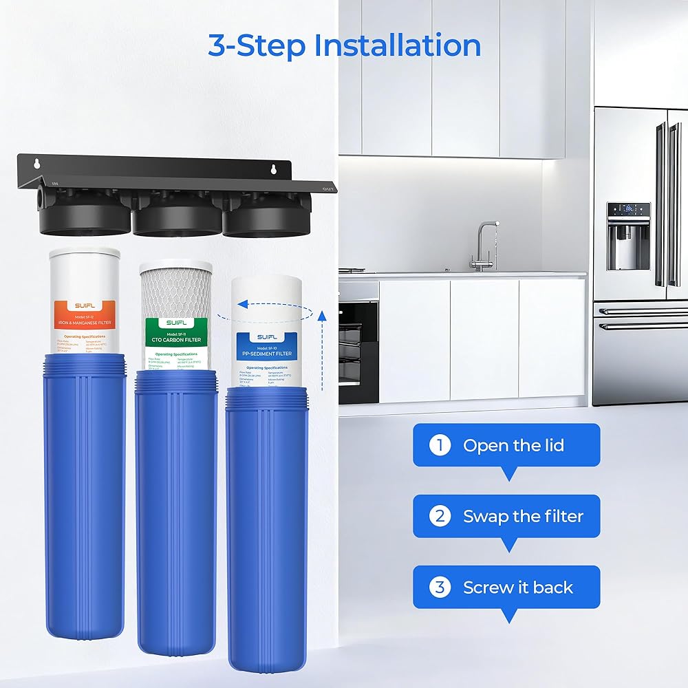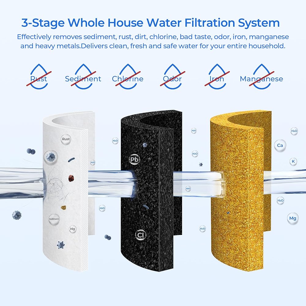 • مجموعة كاملة من فلاتر المياه المنزلية المكونة من 3 مراحل: عبوات تحتوي على رواسب PP وCTO وفلتر الحديد والمنجنيز بسعة 100000 جالون. من الماء، وهو ما يكفي لتزويد أسرة مكونة من أربعة أفراد بالمياه النظيفة لمدة عام كامل.