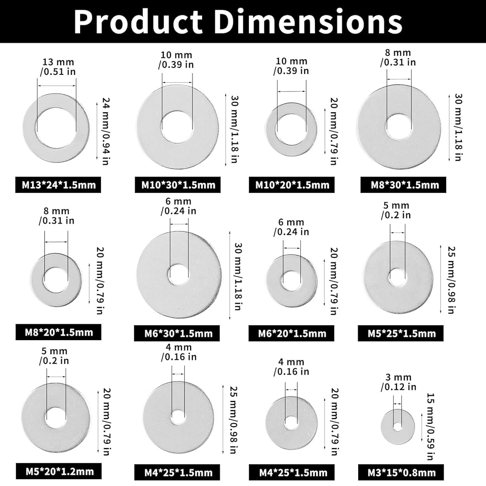 • Superior Materials: washers for screws are made of high-quality stainless steel, offering excellent corrosion and rust resistance, suitable for long-term indoor and outdoor use, and durable.