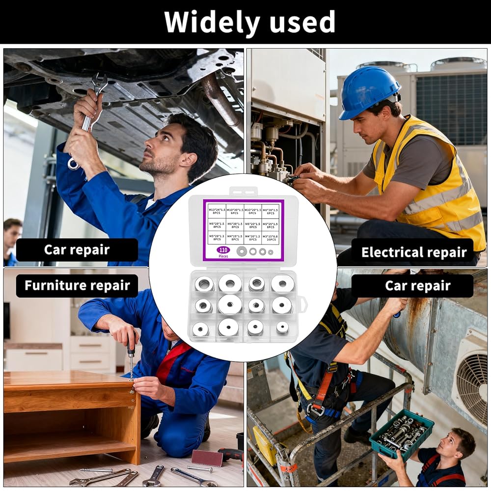 110 قطعة من الغسالات المسطحة للبراغي، وغسالات الرفارف المصنوعة من الفولاذ المقاوم للصدأ، ومجموعة غسالات مسطحة من الفولاذ المقاوم للصدأ متنوعة، وغسالة معدنية للبراغي والأجهزة المنزلية والسيارات الصناعية (M3-M13)