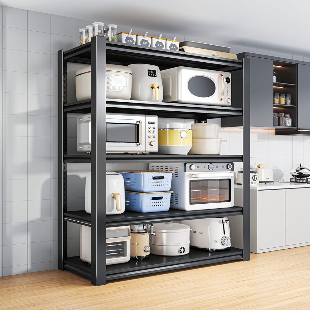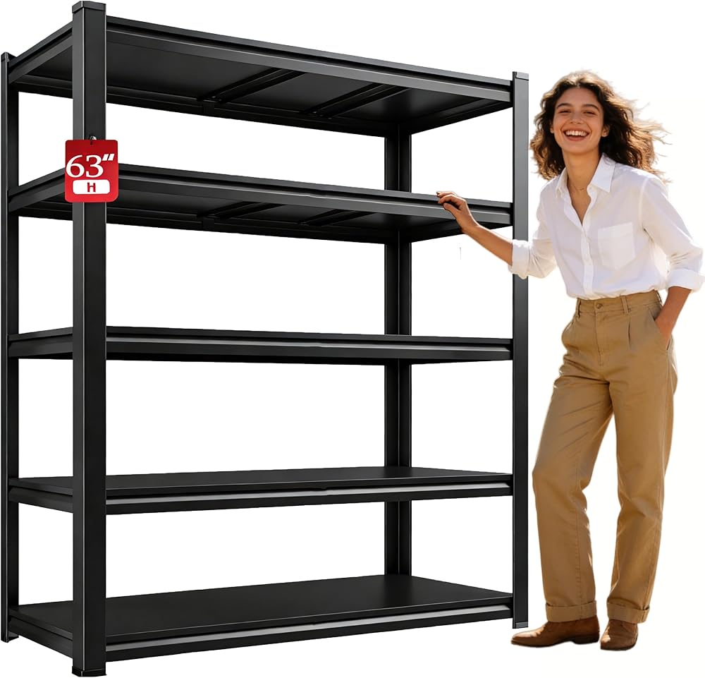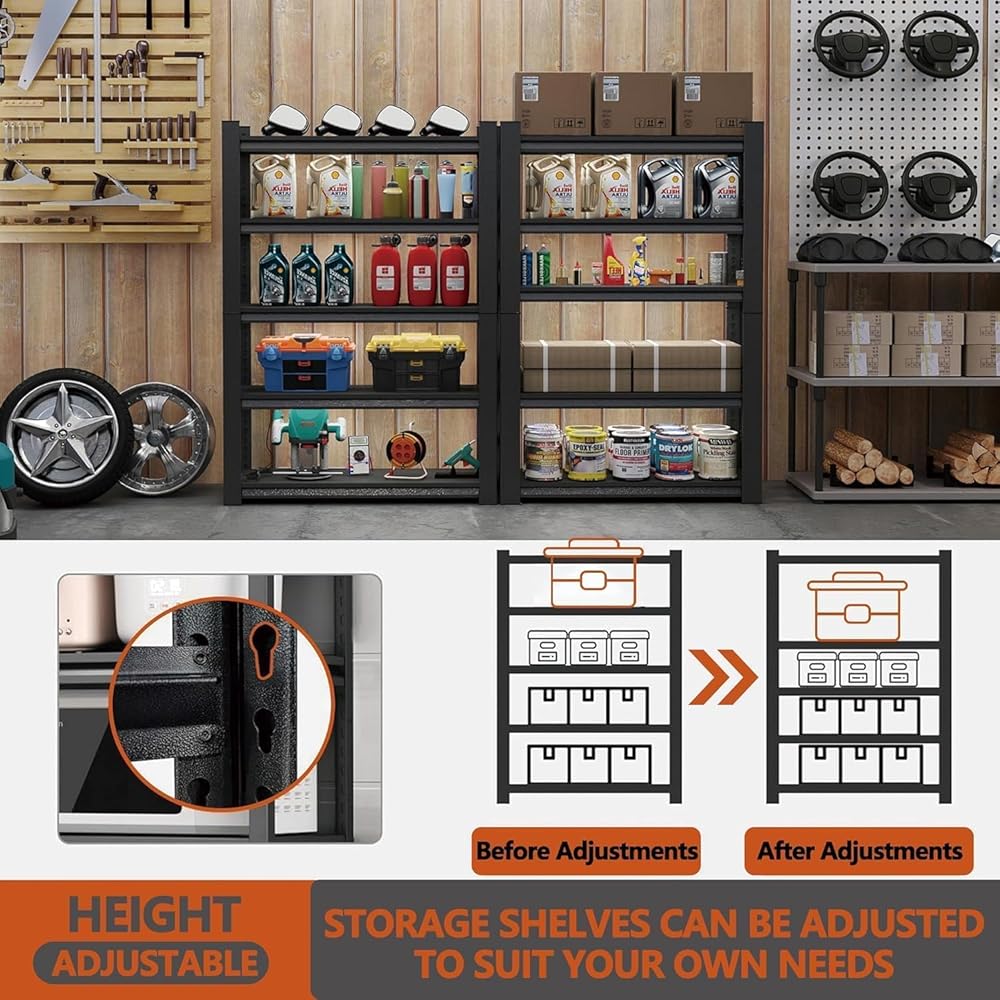【Multi-Functional 5 Tier Shelving Unit for Versatile Use】Our garage shelving offers two fantastic options to meet diverse storage needs. The 63" H x 45" W x 16" D multipurpose adjustable shelves is a heavy - duty unit with a perfect size, suitable for a wide array of locations like garages, pantries, kitchens, basements, closets, living rooms, storage rooms, libraries, offices, schools, warehouses, and supermarkets. these shelves provide reliable, heavy-duty organization that maintains clean, orderly spaces