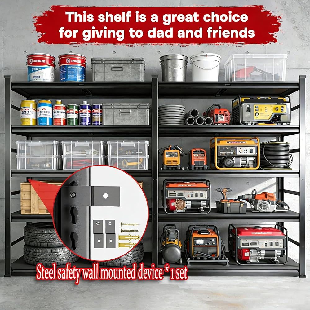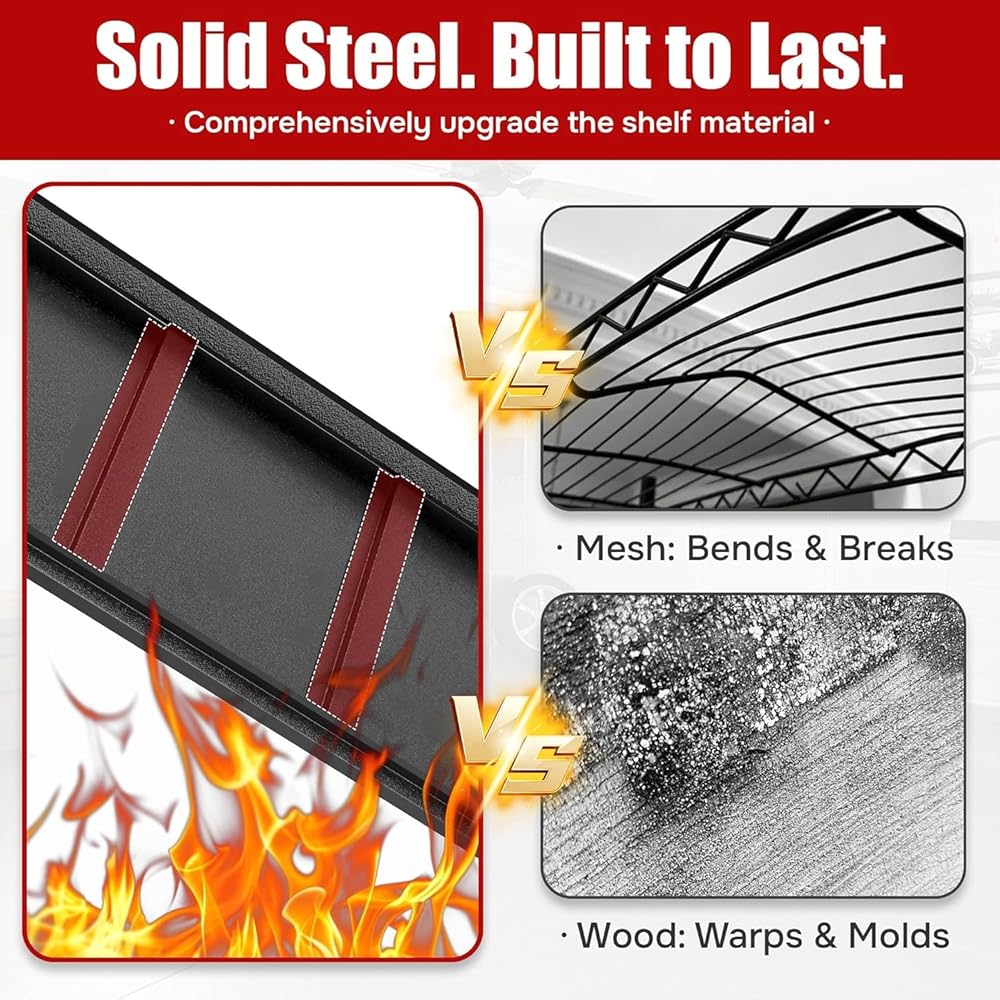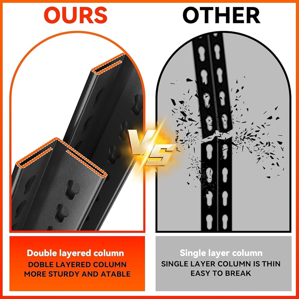 【Upgraded Dual-Layer Columns for Enhanced Stability】 Unlike standard single-layer columns, our garage shelving features upgraded dual-layer steel columns that deliver superior stability and increased load-bearing capacity. The reinforced structure evenly distributes weight to prevent warping or sagging over time—even under heavy, long-term use. 3000lbs Capacity shelving units and storage and constructed from high-quality steel, this unit has been rigorously pressure-tested to reliably support tools, equipment, and bulky items without bending or wobbling. Built to outperform basic shelving, it offers unwavering support for your toughest storage demands