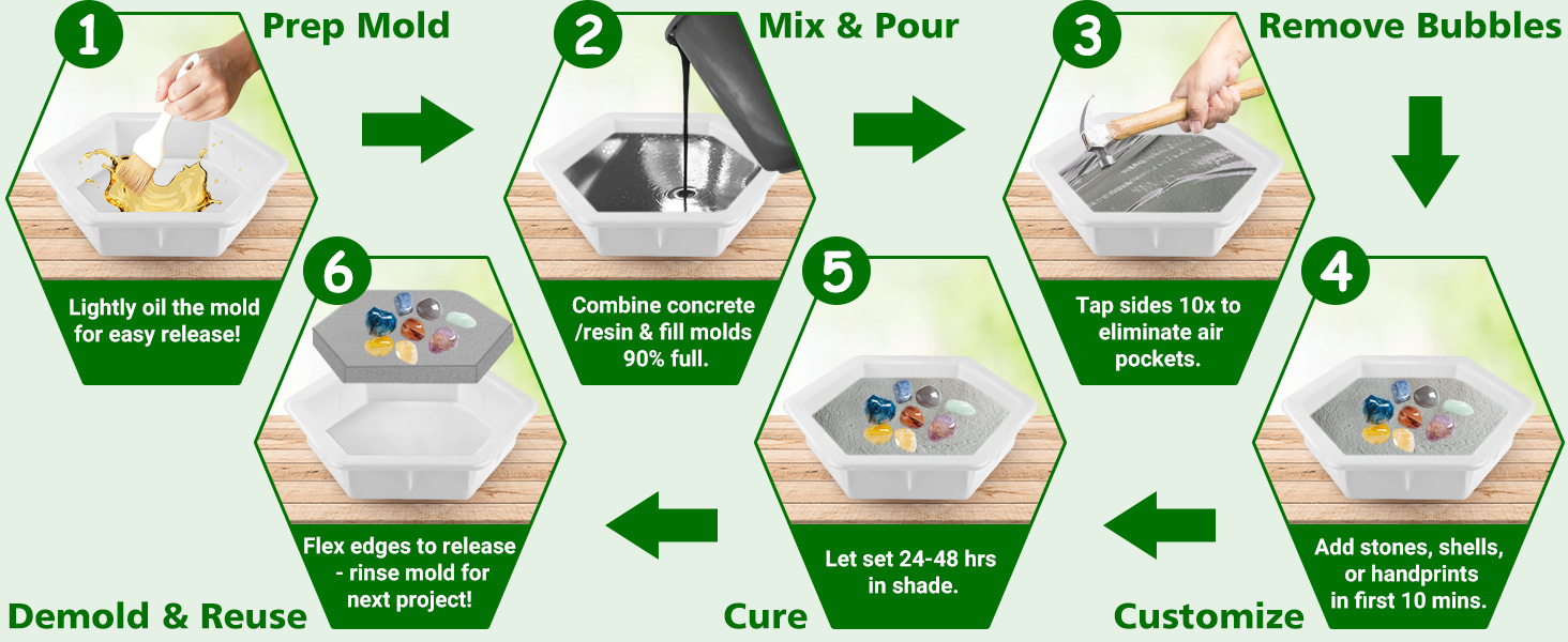 🌻قم بإنشاء أحجار حديقة سداسية ساحرة لتخطيط الممرات أو أحواض الزهور أو مساحات الفناء. يضيف الشكل الهندسي لمسة عصرية للمناظر الطبيعية. استخدم قوالب الرصف Verdanzia للخرسانة للهدايا التي تصنعها بنفسك، أو الديكور الخارجي، أو المعارض الحرفية.