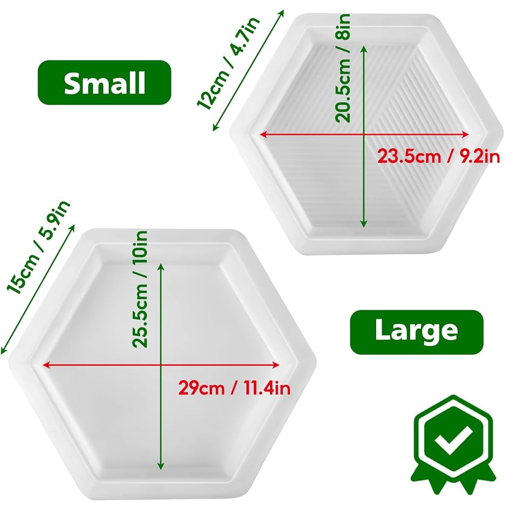 🌻تتضمن هذه العبوة المتنوعة المكونة من قطعتين قوالب خرسانة سداسية كبيرة (جانب 5.9 بوصة) وصغيرة (جانب 4.7 بوصة)، مثالية لإنشاء مسارات حديقة فريدة. تسمح الأحجام المتباينة بتصميمات إبداعية، مما يعزز الديكور الخارجي الخاص بك. مثالية لعشاق الأعمال اليدوية الذين يبحثون عن صانعي مسارات متينين وقابلين لإعادة الاستخدام.