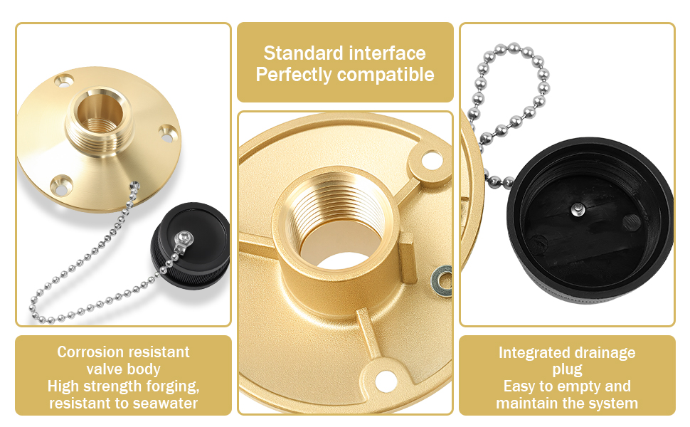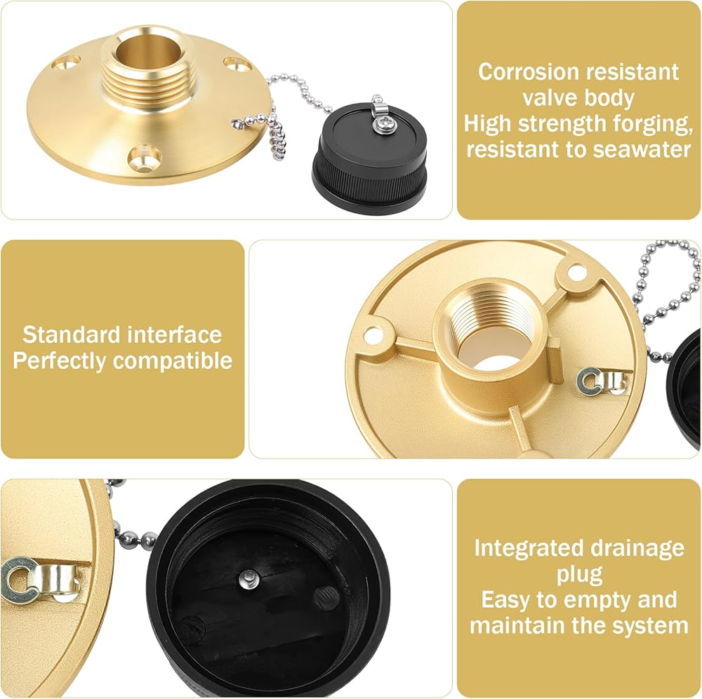 مواد عالية الجودة: مصنوع من النحاس الفاخر، يوفر منفذ المياه العذبة هذا مقاومة ممتازة للتآكل والأشعة فوق البنفسجية، مما يسمح له بتحمل البيئات البحرية القاسية ويجعله أداة غسيل موثوقة وطويلة الأمد لأصحاب القوارب.