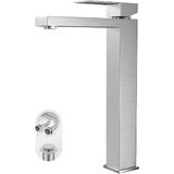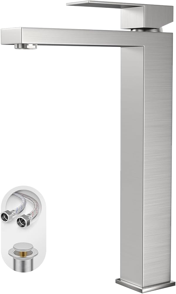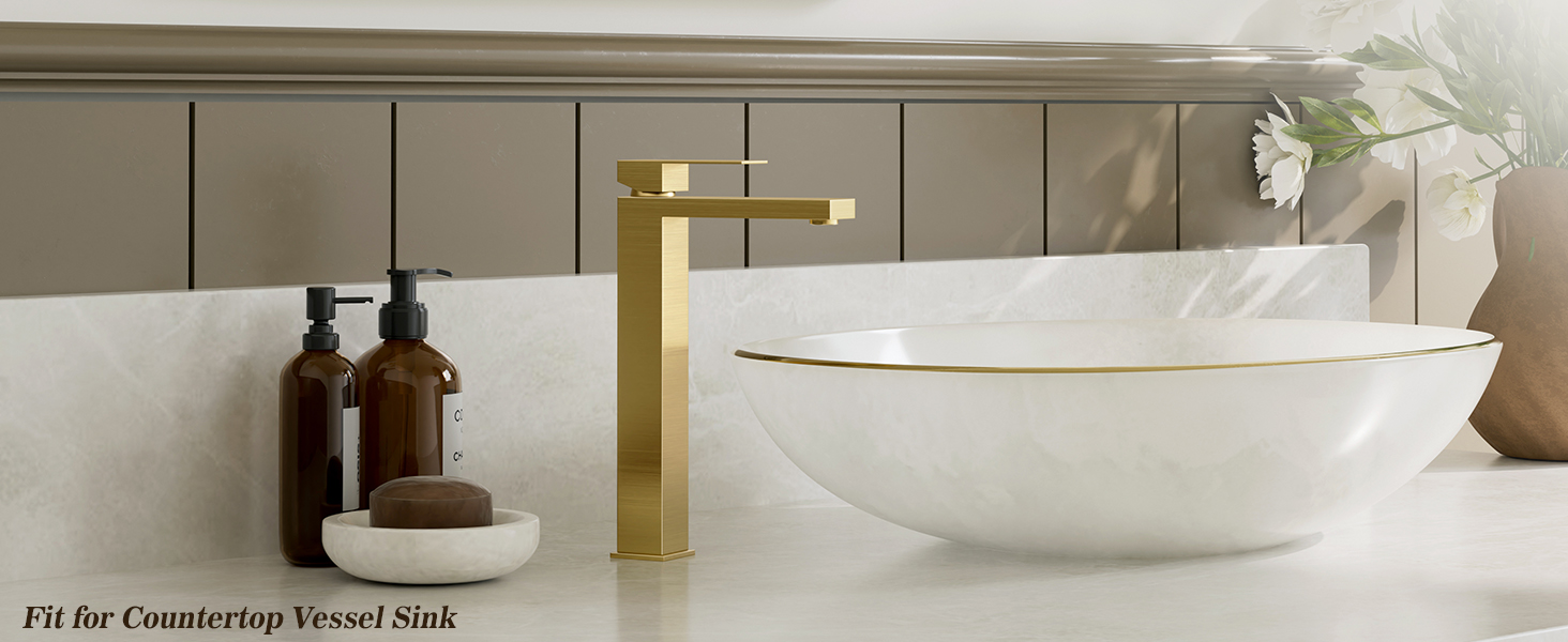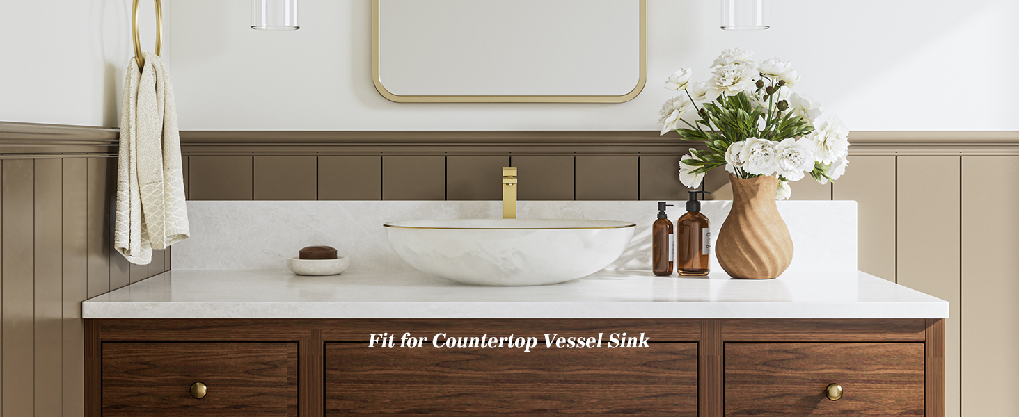 أبعاد صنبور الحمام فوق سطح المنضدة: تناسب فقط الفتحات الفردية المثقوبة مسبقًا بقطر 1.26 بوصة - 1.38 بوصة، مصممة لأحواض الحمام الموجودة فوق المنضدة، الحد الأقصى لسمك سطح المنضدة هو 1.38 بوصة. الارتفاع الإجمالي: 11.73 بوصة، وصول الصنبور: 5.9 بوصة؛ ارتفاع الصنبور: 10.04 بوصة.