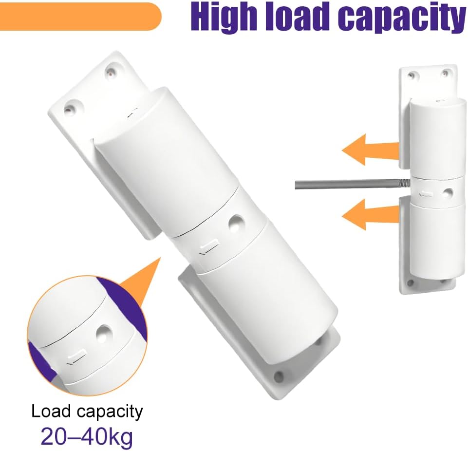 • 【 Convenient Installation】: Both left and right doors can be used by simply reversing the door closer 180°. 1. Place it in the installation position, draw a line and mark it. 2. Tighten the hole position with screws (easier to install with an electric drill). 3. Rotate the connecting rod as shown in the picture and press to adjust the rebound force. 4. After adjusting the elasticity, rotate and connect the long rod at the other end. 5. After installing the anti scratch gasket under the roller, pull out the carrying rod. 6. Installation completed.