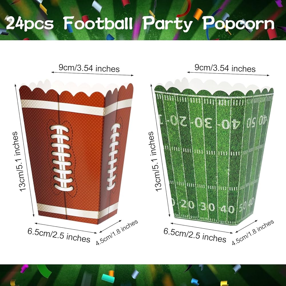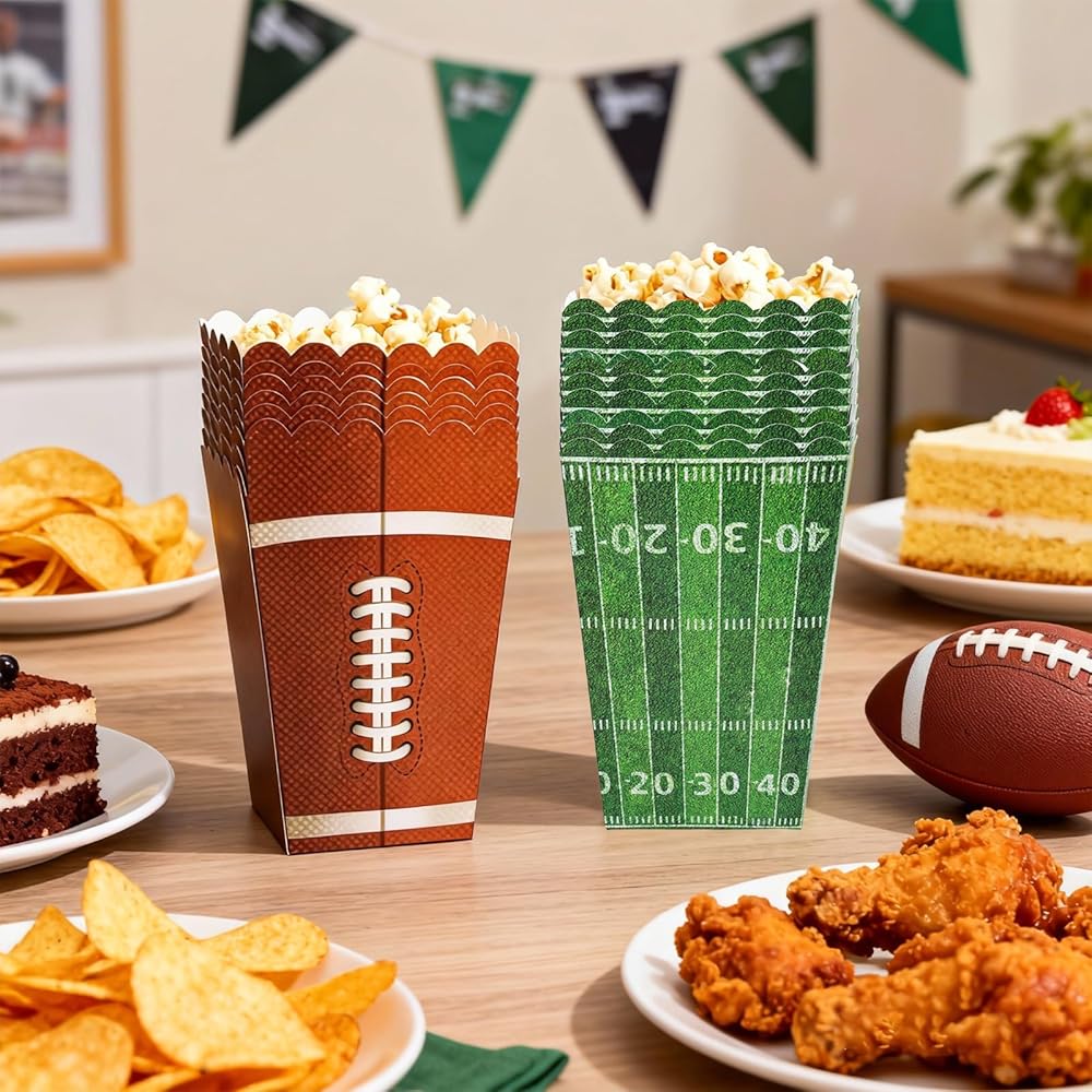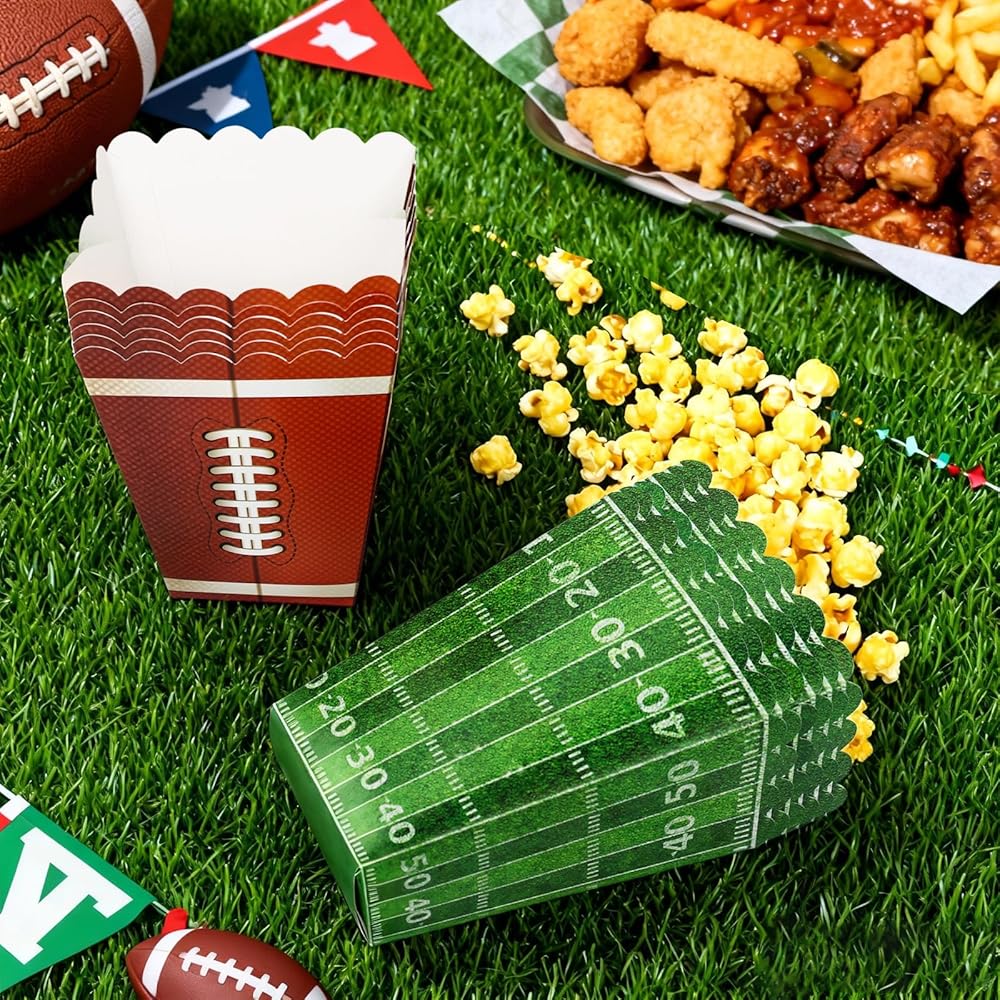 Vibrant Football-Themed Design: Features vibrant festive color schemes, dynamic football motifs, and realistic stadium field patterns on every popcorn bucket, instantly elevating your Rugby Party décor with stadium-style energy