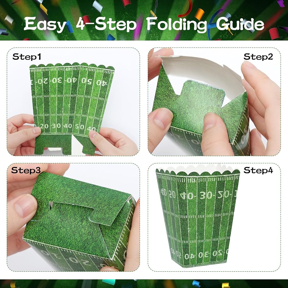 The pack includes 24 boxes with as sorted designs, ensuring ample supplies for all your guests. Turn your football bash into a memorable touchdown-worthy event that every fan will enjoy.
