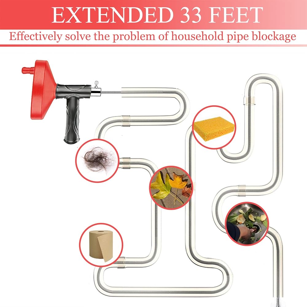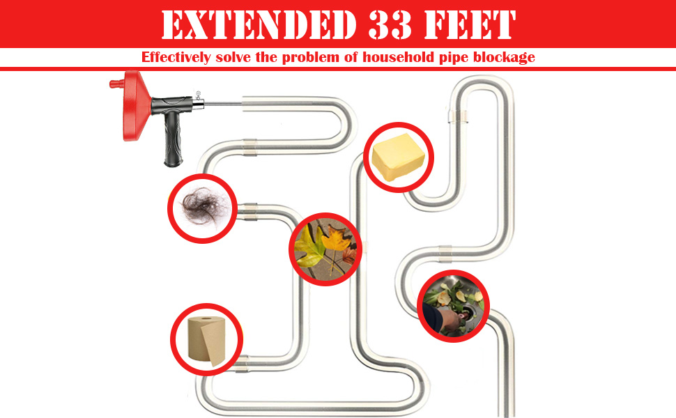 [33 قدمًا من سلك فولاذي مرن يسهل الوصول إلى السدادات الصعبة]: يأتي مثقب تصريف الثعبان الاحترافي هذا مع كابل فولاذي زنبركي عالي التحمل بطول 33 قدمًا يتجاوز الفخاخ لإزالة معظم السدادات المنزلية. أفضل مثقاب تصريف فعال للغاية لفك انسداد المصارف والحفاظ على تدفق المصارف بسلاسة.
