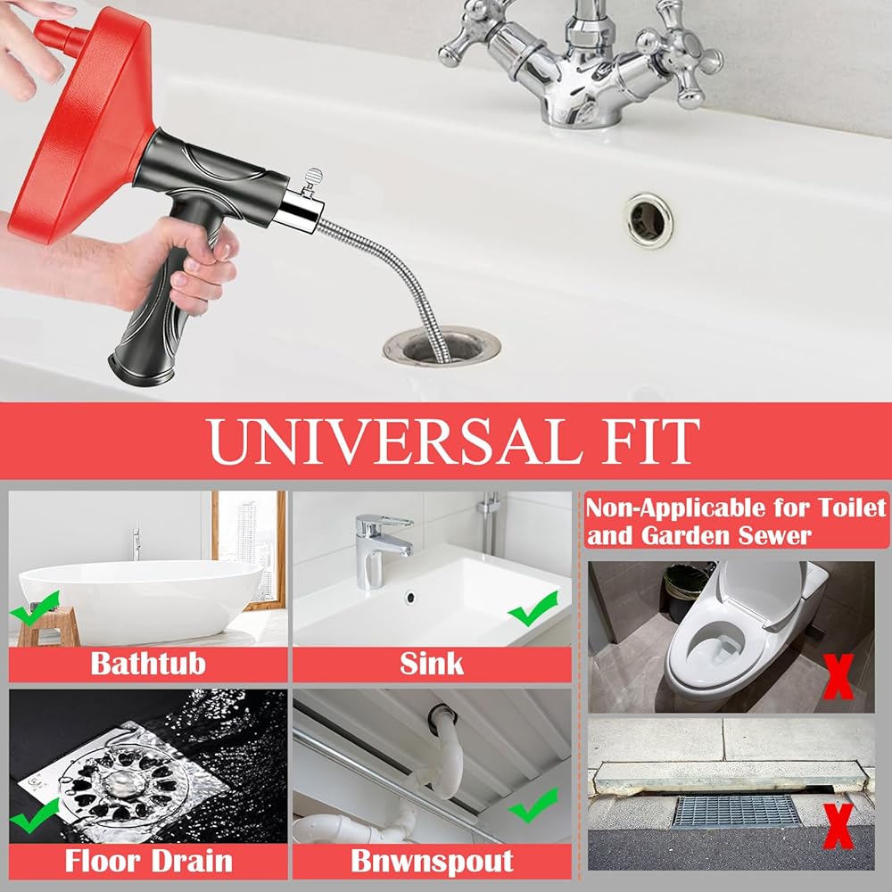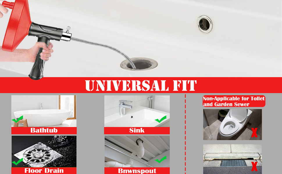 [استخدام احترافي ومتعدد لإزالة معظم السدادات]: يمكنك ضبط أطوال مختلفة بمرونة للتكيف مع أعماق مختلفة من أنابيب الصرف عن طريق تدوير مفتاح المسمار وسحب الزنبركات ذهابًا وإيابًا. ومن ثم، يمكن استخدام استنزاف السباكة على نطاق واسع في أحواض المطبخ، وأحواض الاستحمام، ومصارف الحمام، والمجاري، ومصارف الأرضيات لحل معظم مشكلة الانسداد المنزلي. فمن المستحسن عدم استخدامه في المرحاض.