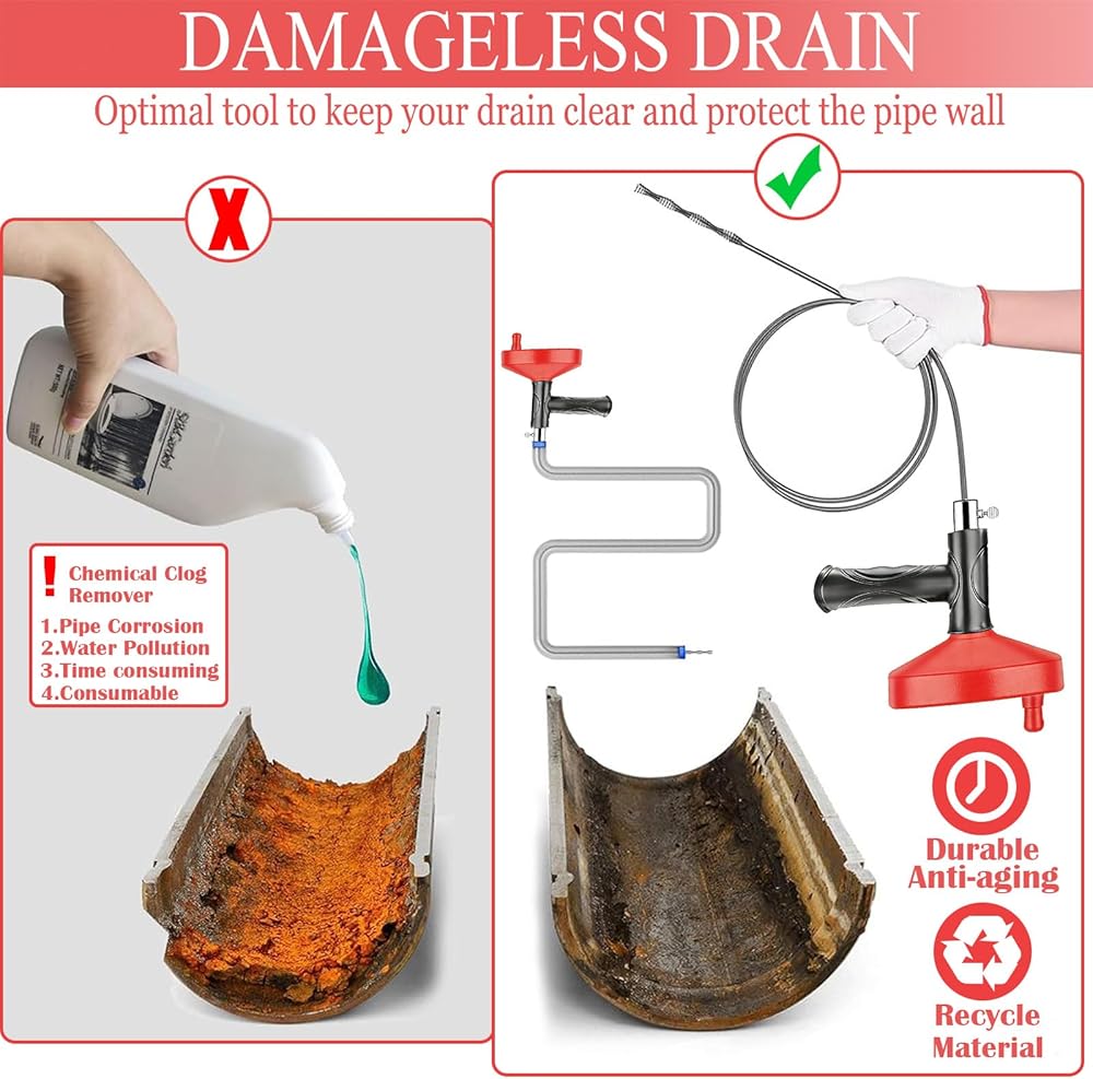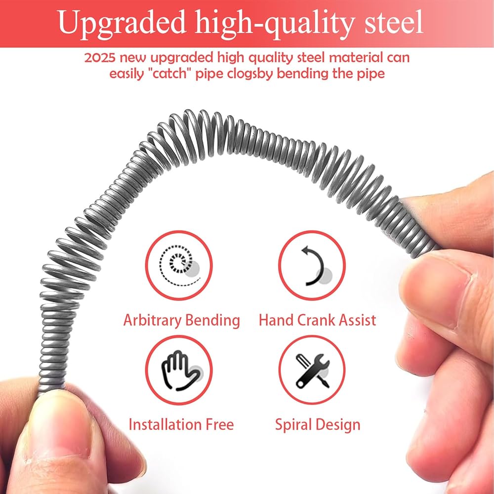 [تشغيل سهل وتعليمات تشغيل مفصلة]: يحتوي ثعبان الصرف على قبضة مسدس مريحة تسهل الاستخدام وتجعل التعامل أكثر راحة. يمكن ثني الزنبرك المرن لأكثر من 90 درجة دون أن ينكسر أو يلتوي، مما يتيح لك الوصول إلى انسدادات الحوض بكفاءة. بالإضافة إلى ذلك، إذا كنت لا تعرف كيفية استخدامه، فإن تعليمات التشغيل التفصيلية ستعلمك مدى سهولة القيام به.