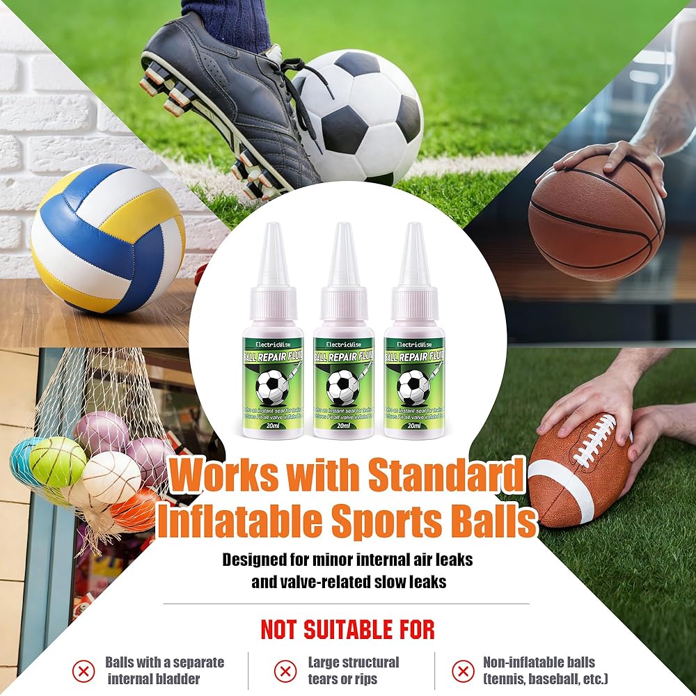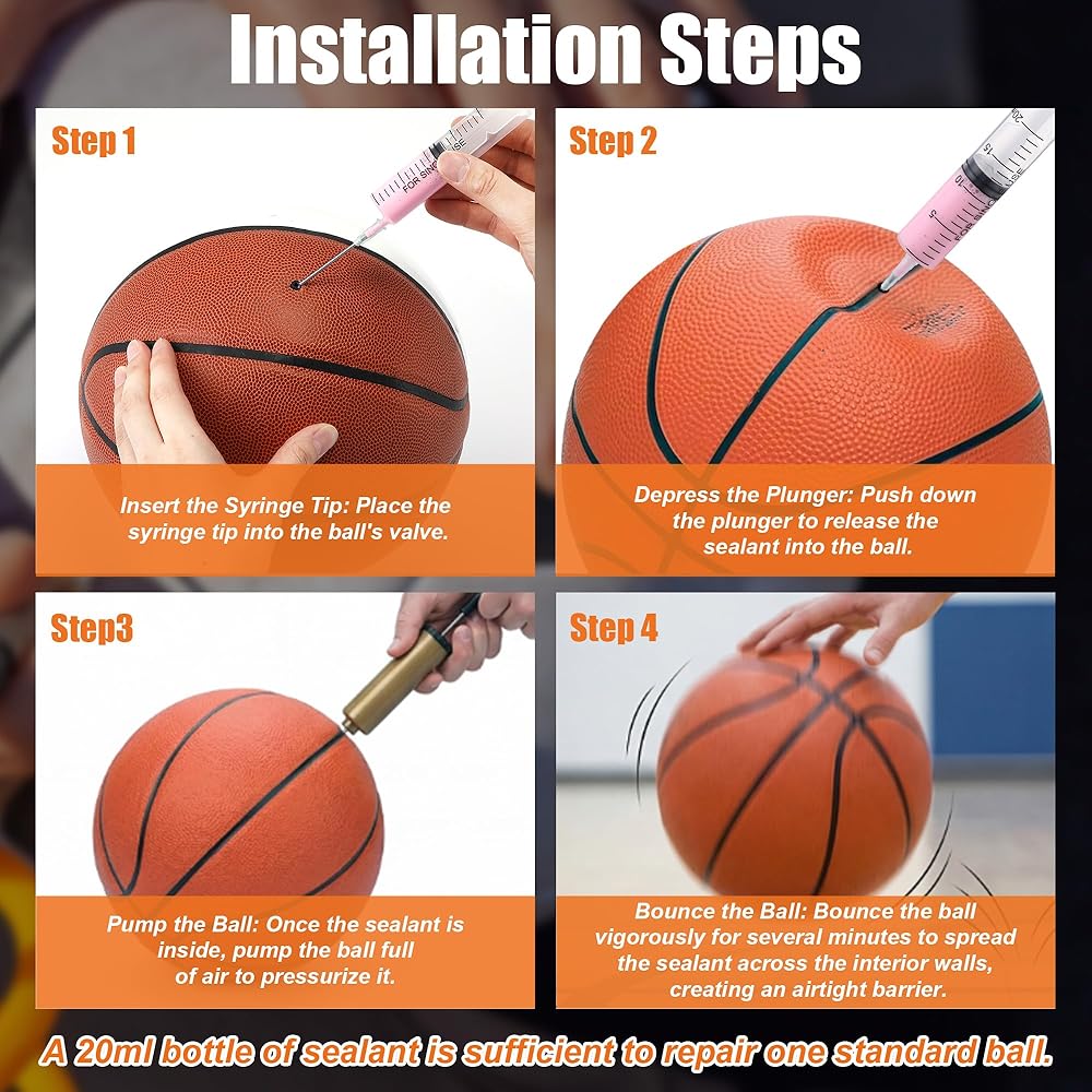 🏐【OPTIMIZED DOSAGE FOR SUPERIOR RESULTS】One 20ml syringe provides the exact amount needed to seal one standard sized ball effectively. This 3-pack offers enough supplies to revive three separate pieces of equipment, making it an outstanding value for team sports or multi ball households. Compatible with basketballs, footballs, volleyballs, and playground balls for versatile utility