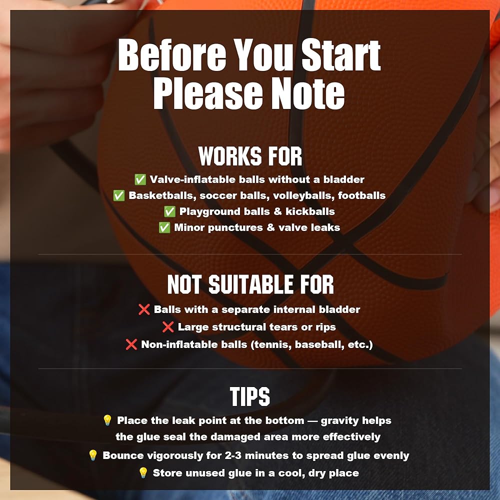 🏆【EXTEND THE LIFE OF YOUR GEAR】Stop retiring expensive basketballs or soccer balls prematurely. This repair solution is ideal for coaches and athletes who demand longevity from their equipment. By sealing leaks from the inside, you preserve the bounce and feel of your gear, ensuring your training sessions and competitive matches never miss a beat due to a flat ball