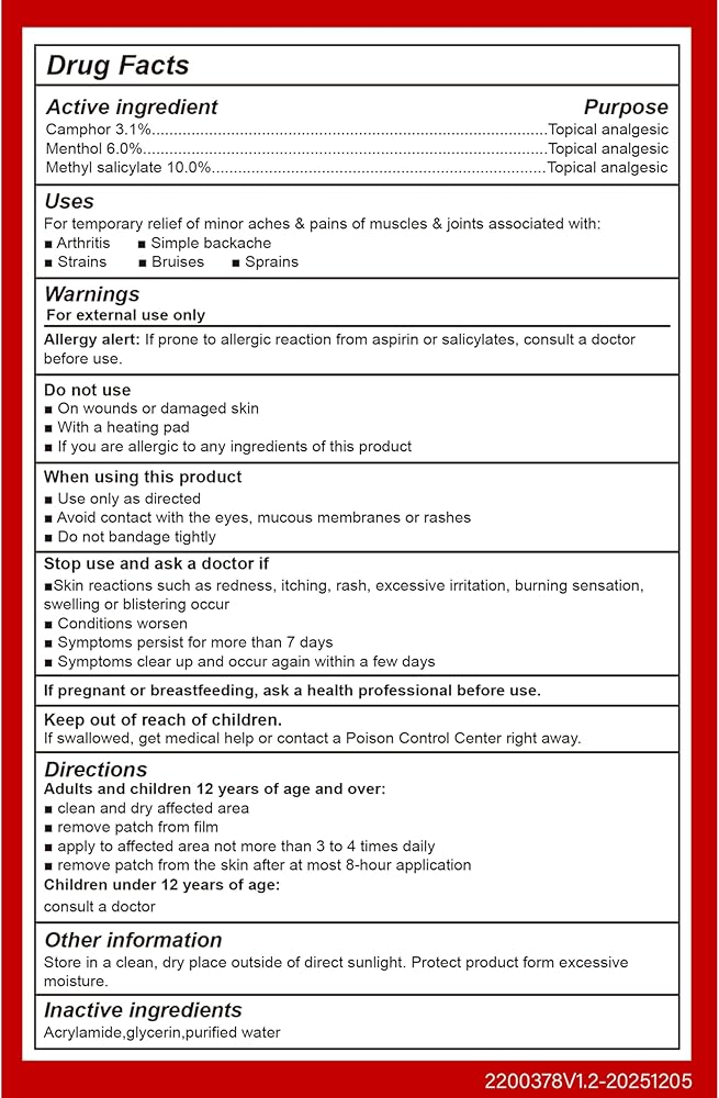 【تخفف الألم بشكل فعال】 تحتوي رقع الألم هذه على 3 مسكنات قوية للألم تعمل في موقع الألم؛ تشمل المسكنات الكافور والمنثول وساليسيلات الميثيل.