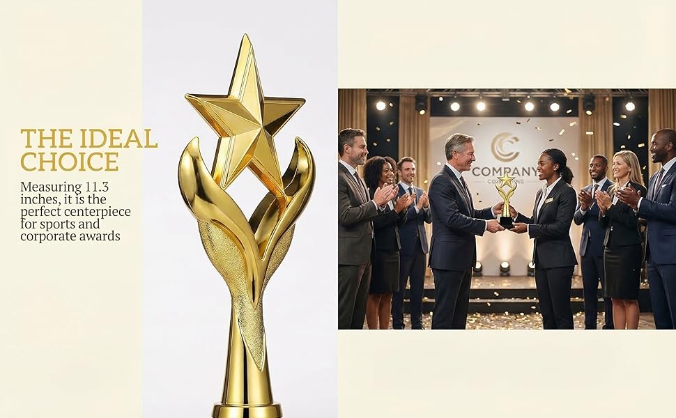 • تصميم نجمي مميز: تتميز جائزة الجائزة بشكل نجمة خماسية فريدة تميزها عن الجوائز التقليدية وتسلط الضوء على الإنجاز المتميز في أي مسابقة أو حدث