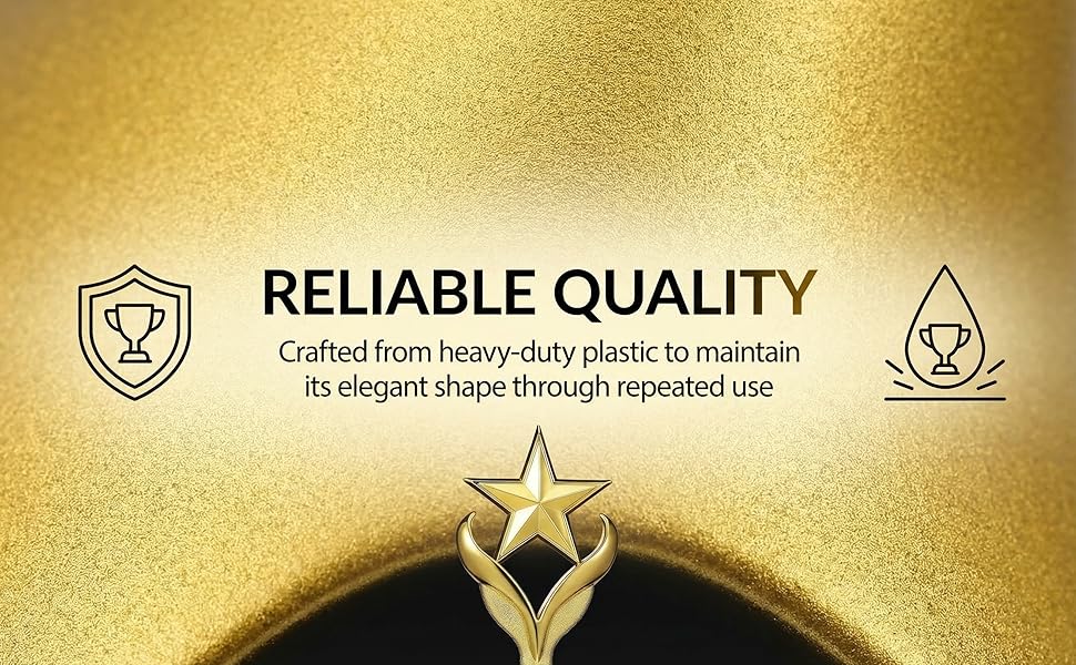• قاعدة مخصصة: تم تصميم قاعدة الجوائز لسهولة التزيين باستخدام الملصقات أو الملصقات مما يسمح لك بتخصيص كأس الجائزة عن طريق إضافة اسم الفائز وتفاصيل الحدث