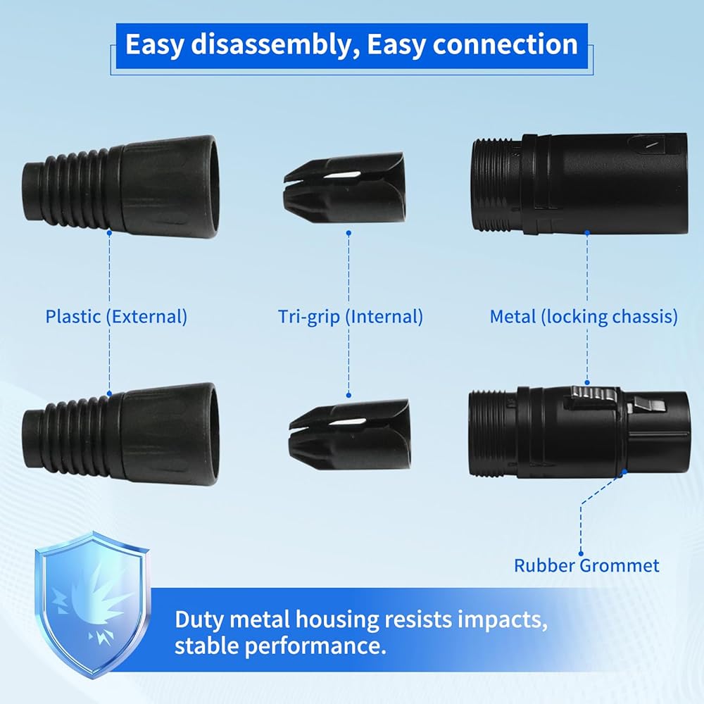 Outstanding and Dependable Connection: Our 3 pin xlr connector, which features a spring locking mechanism and self-locking male and female xlr connectors, ensures a stable and secure connection that is convenient to plug in and unplug