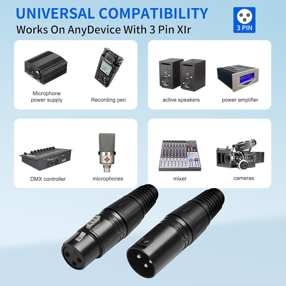 Compatible with: XLR related audio equipment, microphone, lighting dmx with xlr connections