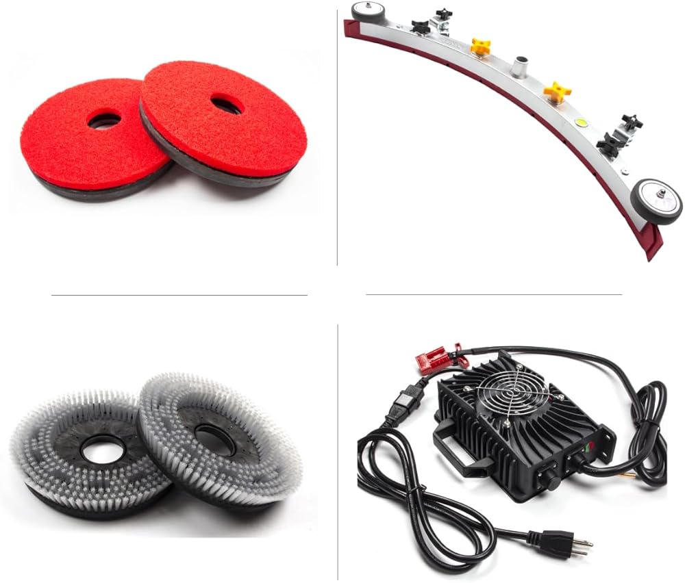 فرش مزدوجة مقاس 17 بوصة مع قوة تنظيف قوية: مجهزة بفرشتين قرصيتين مقاس 17 بوصة وضغط فرشاة بوزن 90 رطلاً، توفر أداة التنظيف هذه تحريكًا متسقًا لإزالة الأوساخ والأوساخ بشكل فعال على الخرسانة والإيبوكسي والبلاط والأسطح الصلبة الأخرى.