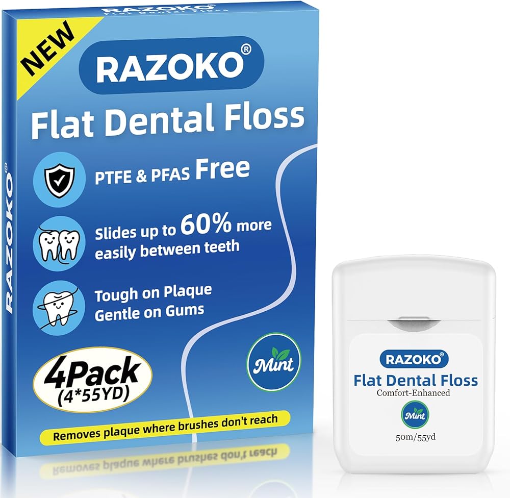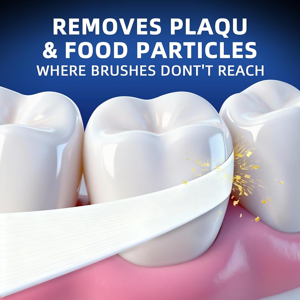 سهولة الانزلاق عبر الفجوات الضيقة | تصميم شريط مسطح: شريط الأسنان المسطح الأنيق الخاص بنا ينزلق بسهولة من خلال فجوات الأسنان الضيقة، لا مزيد من المعاناة مع خيط تنظيف الأسنان الدائري السميك! يزيل السطح الناعم ذو النسيج الدقيق البلاك بشكل فعال مع العناية بخطوط اللثة الرقيقة، للحصول على تجربة تنظيف نظيفة ومريحة في كل مرة.