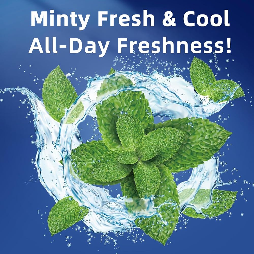 النعناع المثلج المنعش | نضارة تدوم طويلاً (لفة كبيرة بطول 55 ياردة): نعناع ثلجي منعش لتجربة تنظيف أفضل! إن اللفة الكبيرة التي يبلغ طولها 55 ياردة غنية بنكهة النعناع الجليدي المنعش، وتساعد على تحسين رائحة الفم، وتترك مذاقًا منعشًا بعد تنظيف الأسنان بدون مذاق مرير، فقط نضارة النعناع النظيفة.