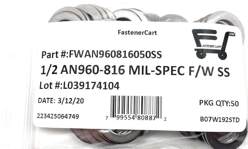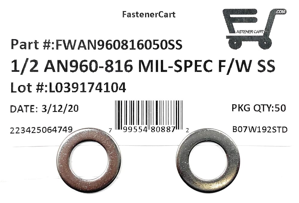 غسالات مسطحة 1/2 بوصة AN960-816 Mil-Spec من الفولاذ المقاوم للصدأ AN960-816 (1/2 ID x 7/8 OD x.062 THK) 50 قطعة