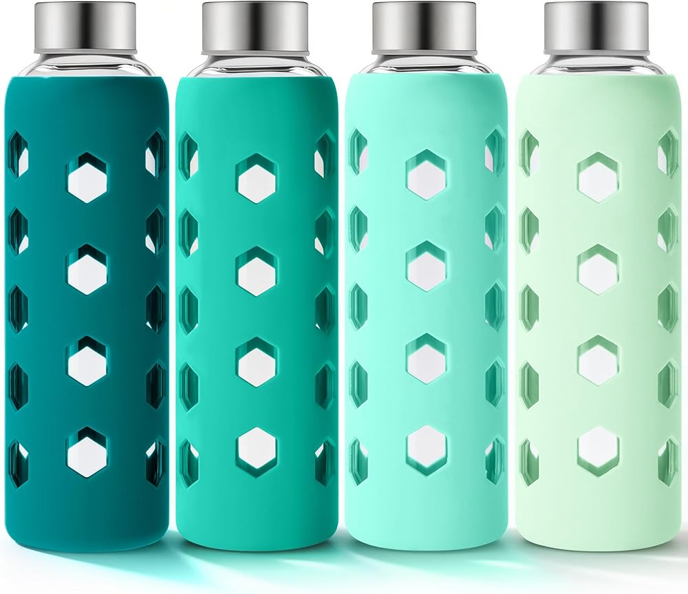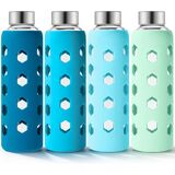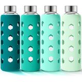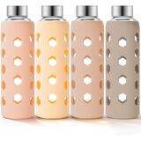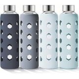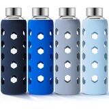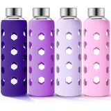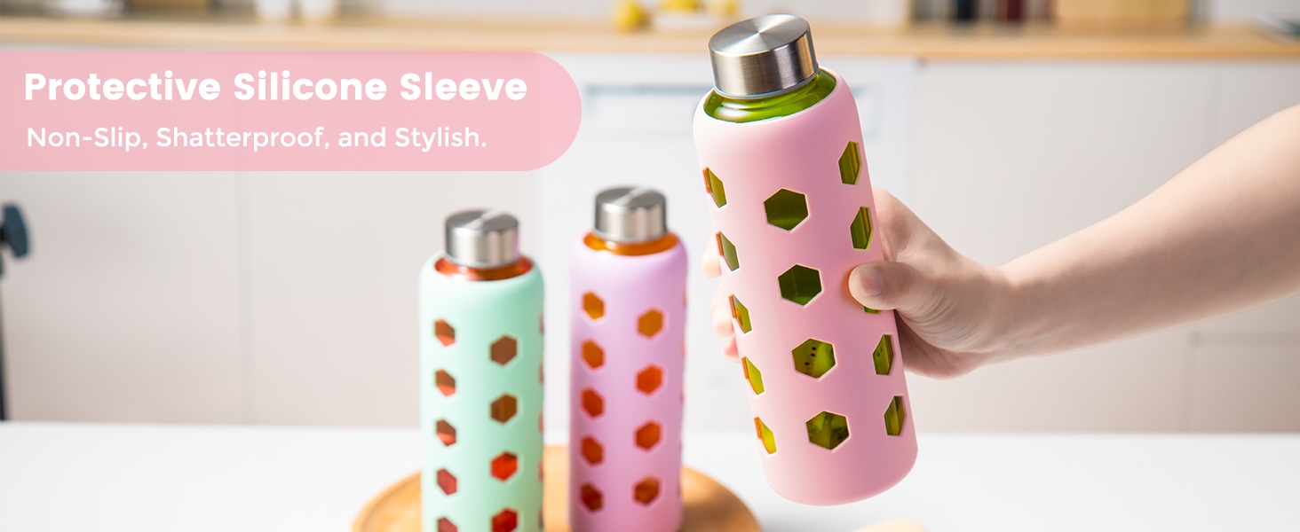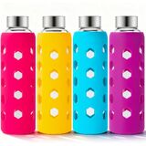 زجاجة مياه زجاجية مع غطاء من السيليكون - لون غلاف السيليكون اللطيف متنوع وأنيق، ويوفر حماية من الصدمات، وسهولة الإمساك، ولا ينزلق ويقلل من التكثيف.