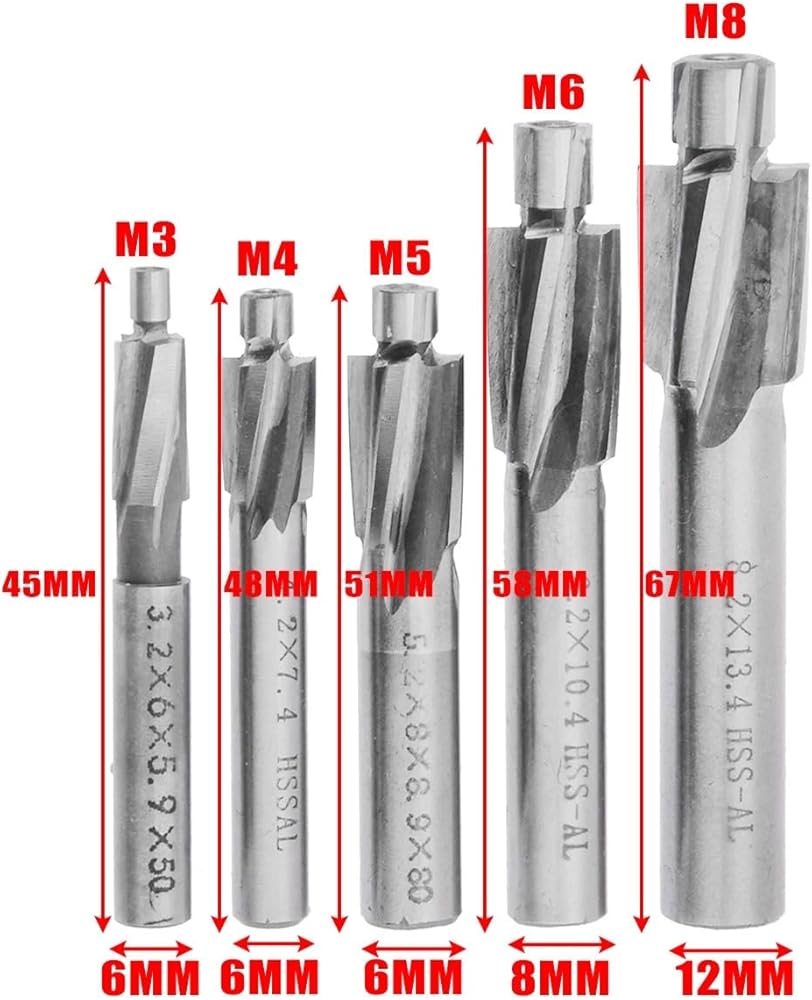5Pcs M3-M8 Counterbore Milling Cutter Material: HSS-ALSuitable For: Machining of low carbon steel and non ferrous materialsPackage Included:5 x End Mill Cutter
