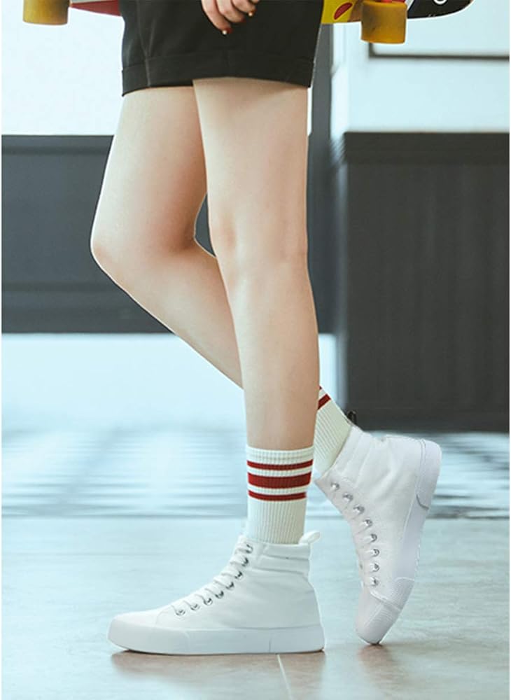 [تجربة مريحة] قماش مسامي عالي الجودة يجعل هذه الأحذية القماشية الكاجوال مثالية للربيع والصيف، كما أنها توفر حماية جيدة لكاحليك. الإحساس الغني بالتصميمات الهرمية يمكن أن يجعل ساقيك تبدو أطول. المطاط السميك فعال في حماية إصبع القدم والكعب، ويمنحك وقتًا أطول للارتداء.