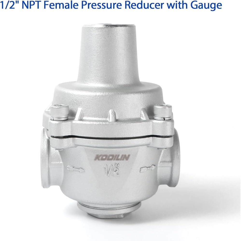 صمام منظم ضغط المياه Kodilin مع مقياس، منظم ضغط المياه RV قابل للتعديل 1/2 بوصة NPT، صمام تخفيض ضغط المياه من الفولاذ المقاوم للصدأ 304 للحديقة والمنزل والاستخدام الصناعي