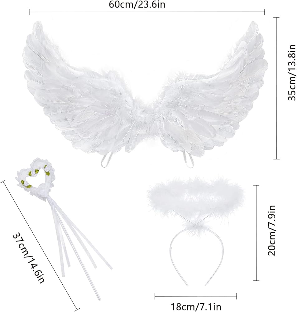 مجموعة أزياء Angel Wings: تأتي مجموعة أجنحة الملاك هذه مع جناح وهالة وعصا. تصميم الجناح الكلاسيكي ومادة الريش الأصلية سيجعلك ألطف ملاك.