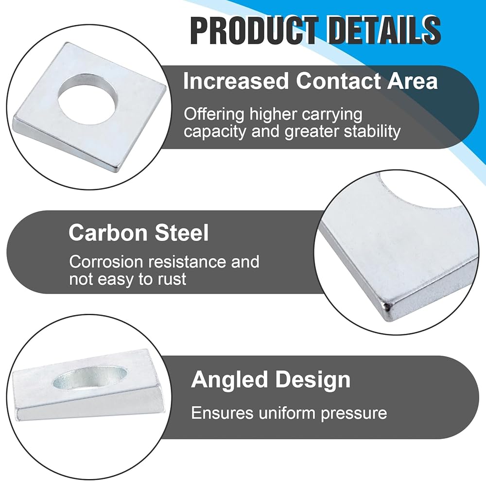 Wide Application: These wedge washers carbon steel galvanized can be used in mechanical construction, and industrial applications, such as buildings, bridges, automobiles or other steel structure installations