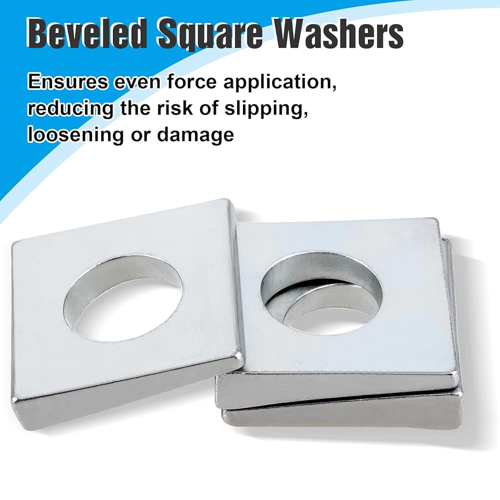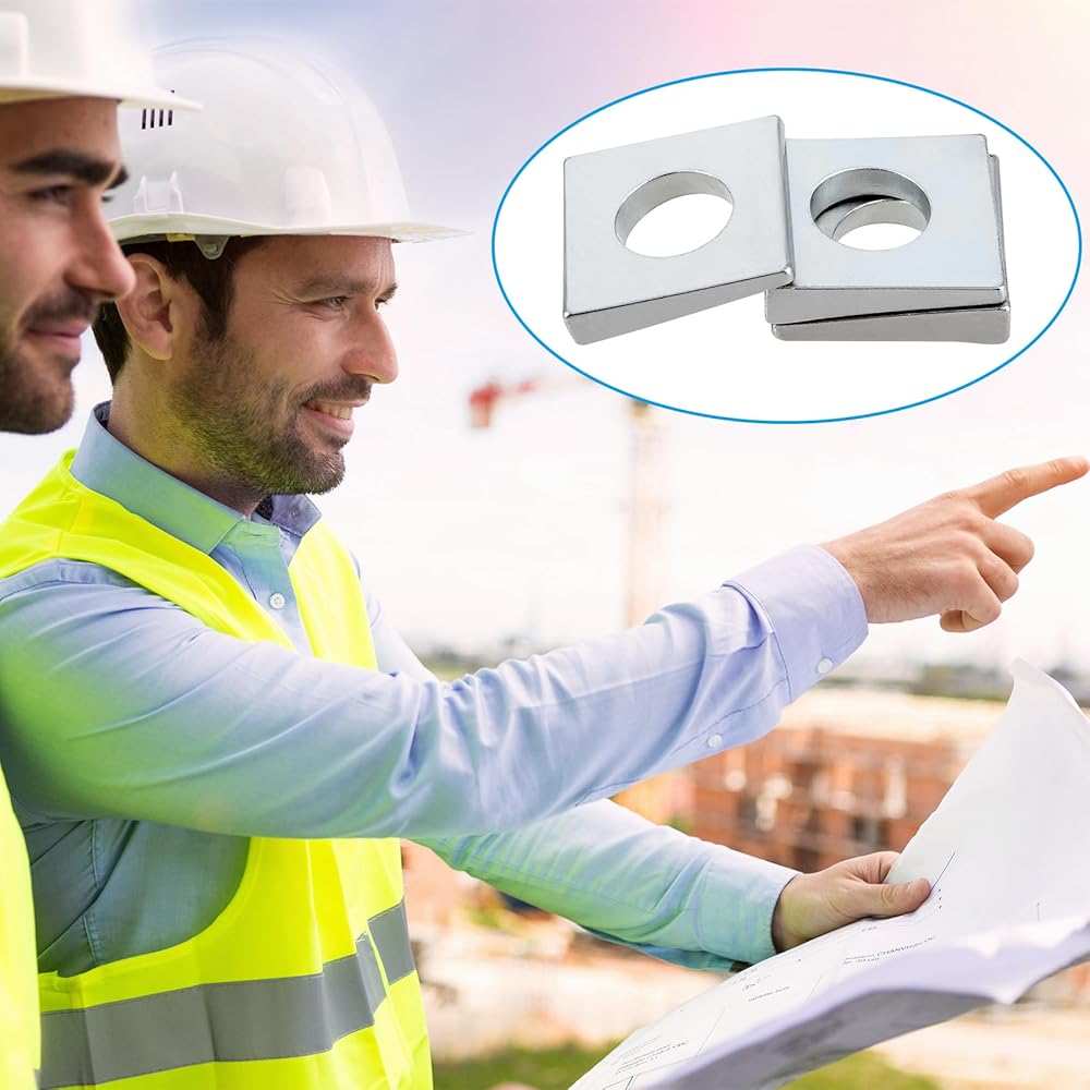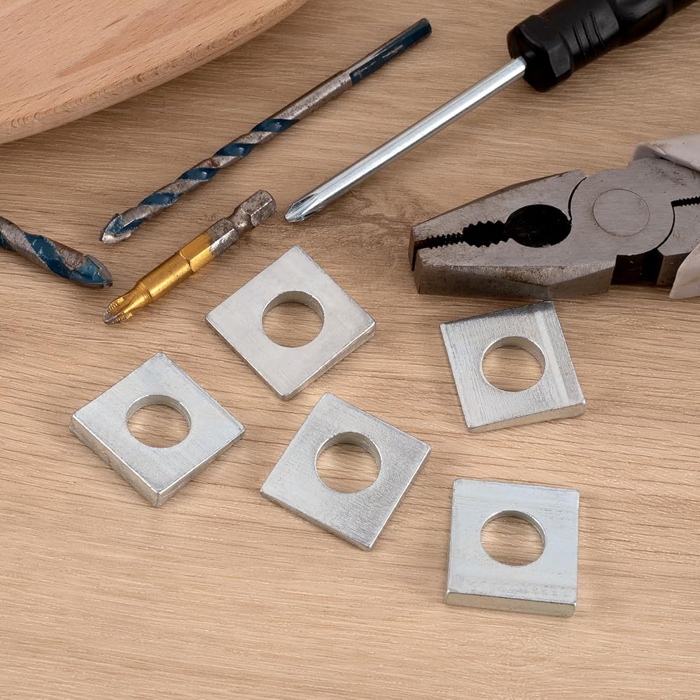 Size Information: Each square washer has an inner diameter of 1/2 inch, an outer dimension of 1-1/8 x 1-1/8 inches, and a thickness of 2 to 6 millimeters to ensure uniform force distribution