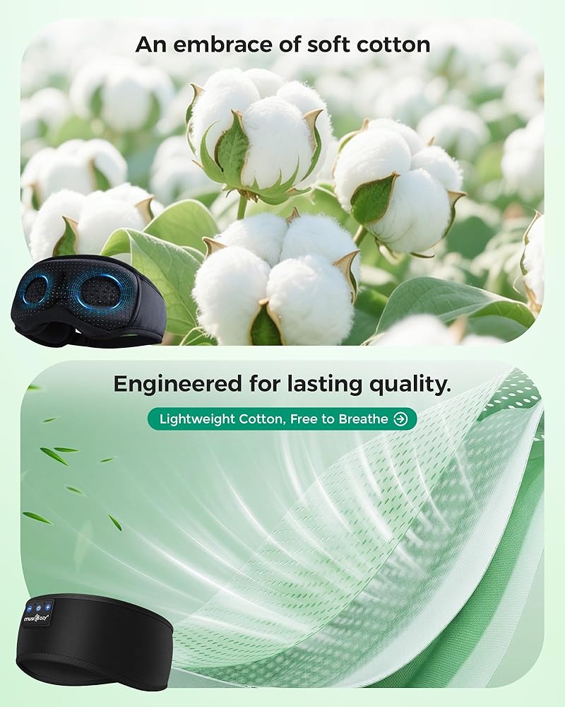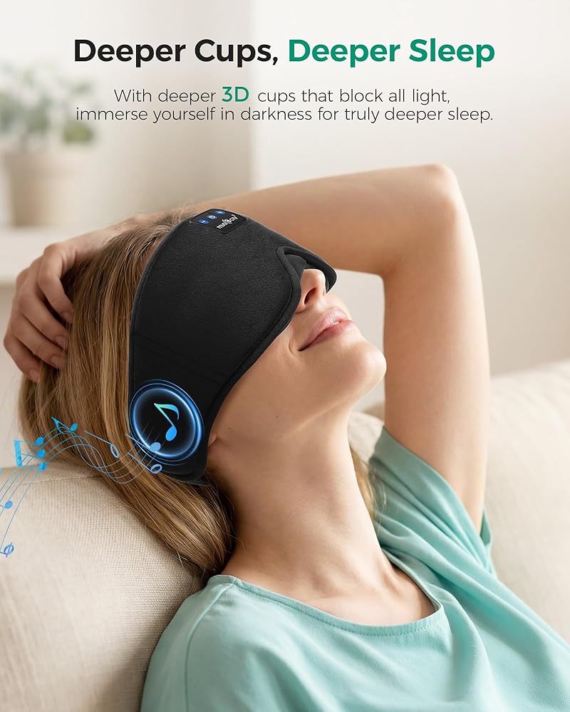 الظلام التام والراحة الفائقة - قناع العين الإسفنجي ذو الشكل ثلاثي الأبعاد يحجب كل الضوء ويناسب دون ضغط. مع عصابة رأس قابلة للتنفس، فإنها تخلق غرفة شخصية لراحة عميقة.