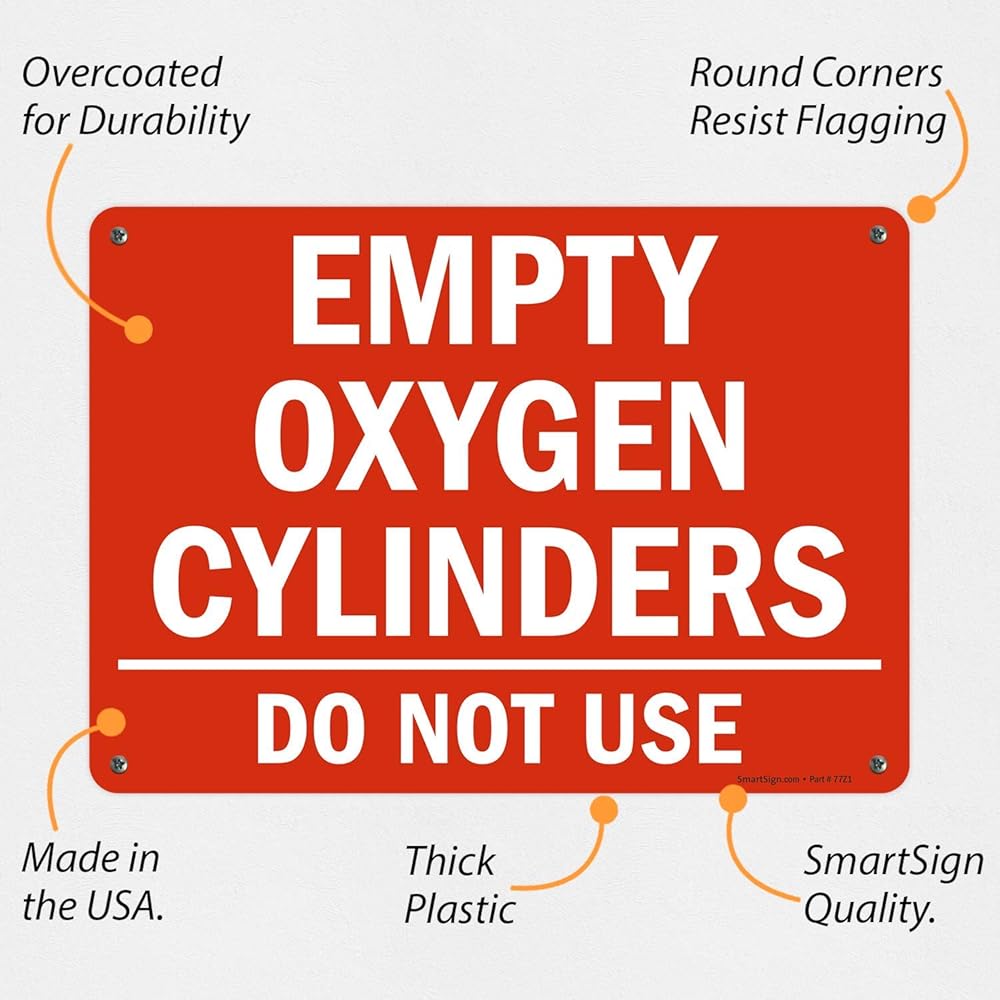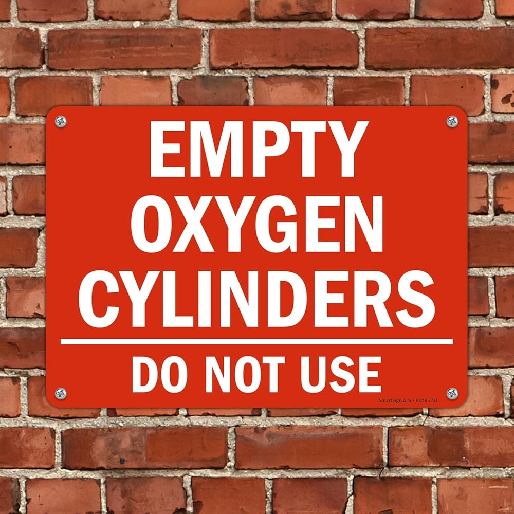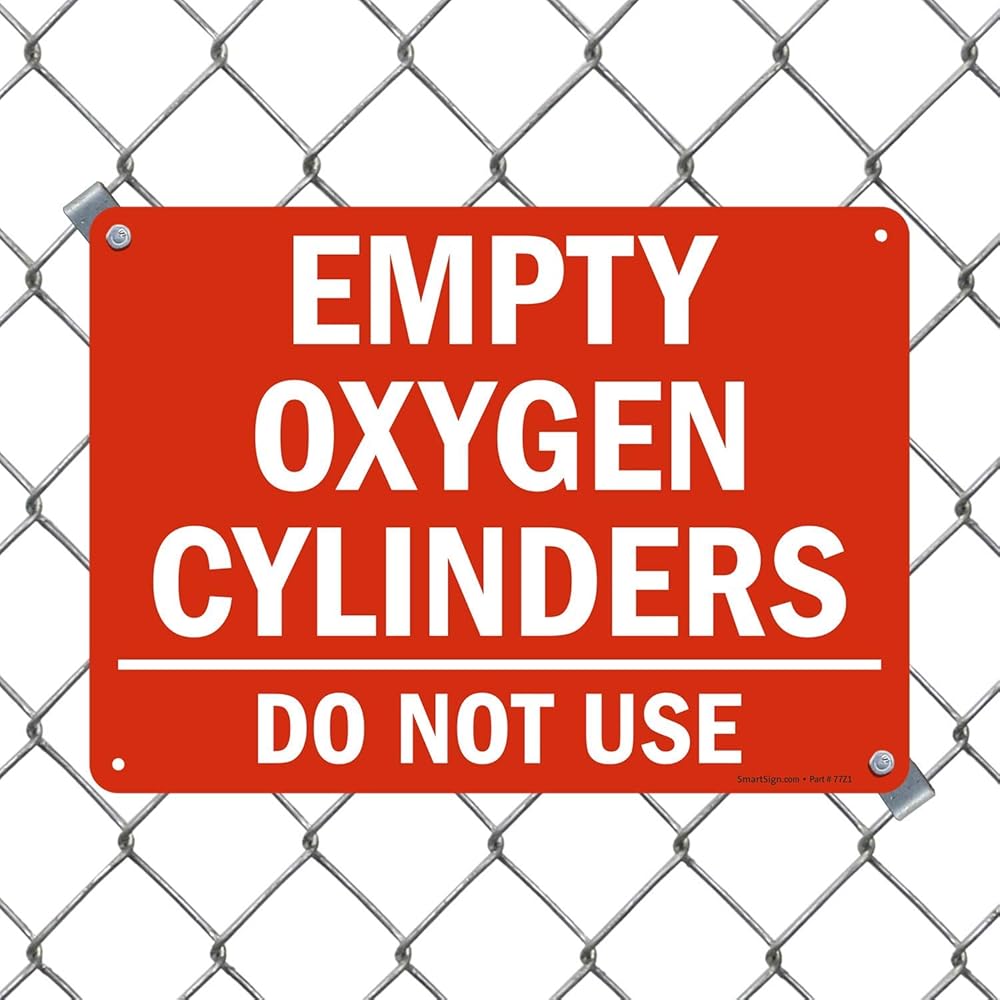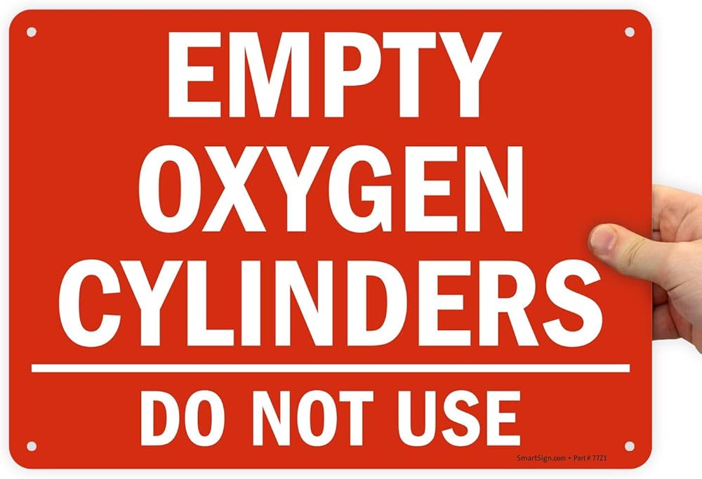 إعطاء تنبيه. تُعلم لافتة أسطوانات الأكسجين الفارغة العمال بمكان تخزين أسطوانات الأكسجين في مكان مقاوم للتلاعب.
