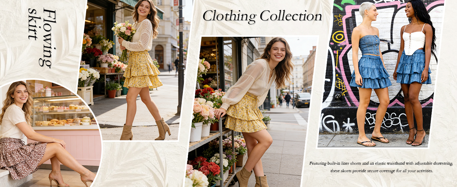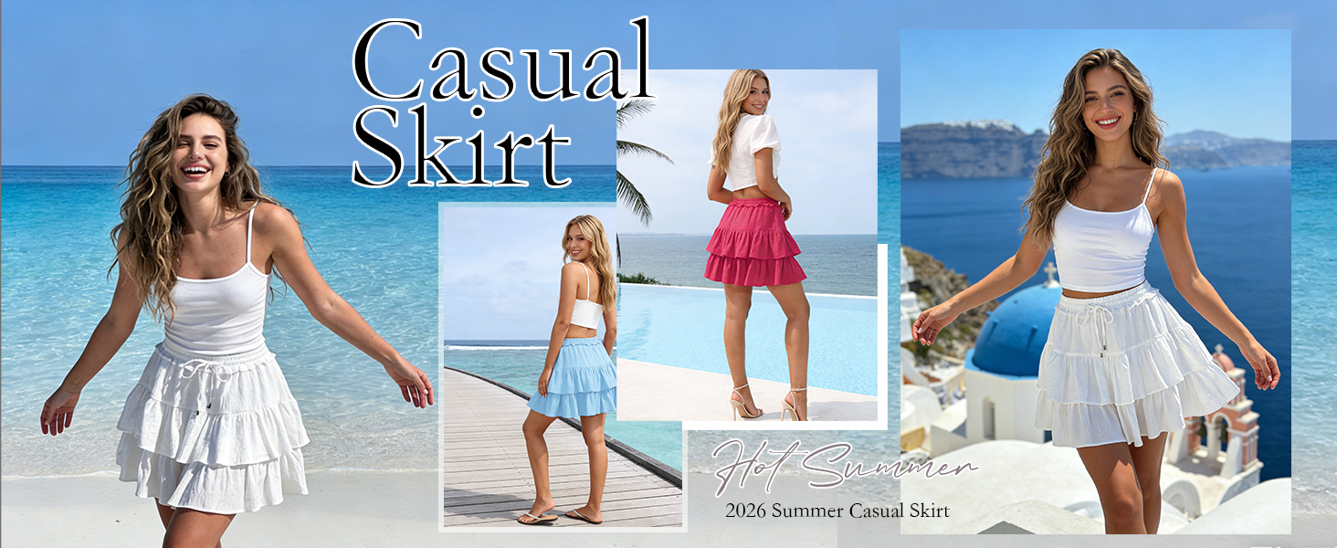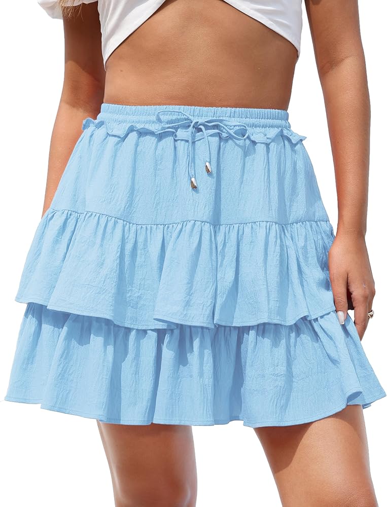 This golf tennis skorts perfectly blends fashion and comfort. Featuring built-in liner shorts and an elastic waistband with adjustable drawstring, these skorts provide secure coverage for all your activities.The double-layered ruffle tiered skirts create a playful, feminine silhouette while the lightweight cotton fabric ensures breathability during warm summer days. The flowy A-line design moves gracefully with every step, making these cute mini skirts ideal for various occasions from casual outings to outdoor concerts. Perfect for beach walks, brunch dates, or summer festivals, these versatile skorts combine the elegance of a mini skirt with practical coverage. These are also nice summer skirts for women, y2k skirts for girls, A-Line short skirts for women, birthday gift for girls, halloween skirts for women, christmas skirts for women, Valentine's Day gifts for wife, club skirts, travel skirts, daily wear skirts, causal skirts, vacation skirts, dating skirts, birthday party skirts, cocktail skirts, maternity skirts, work skirts, dance skirts, circle skirts, graduation skirts, street skirts. We have many colors, such as black skirts for women, white skirts for women, hot pink skirts for women, beige skirts, red skirts, brown skirts, royal blue skirts, pink skirts, sky blue skirts, denim mini skirt, gold skirts, lavender skirts, dark green skirts, floral skirts, navy blue skirts.
