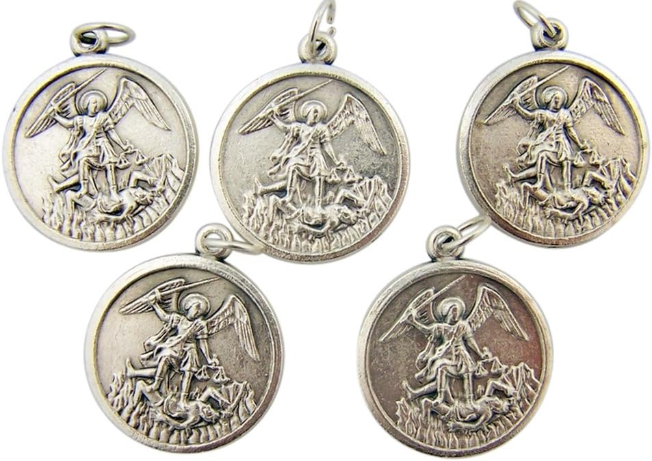 هدايا دينية فضية اللون قاعدة من الميداليات القديس ميتشل، مجموعة من 5، 1 1/4 بوصة
