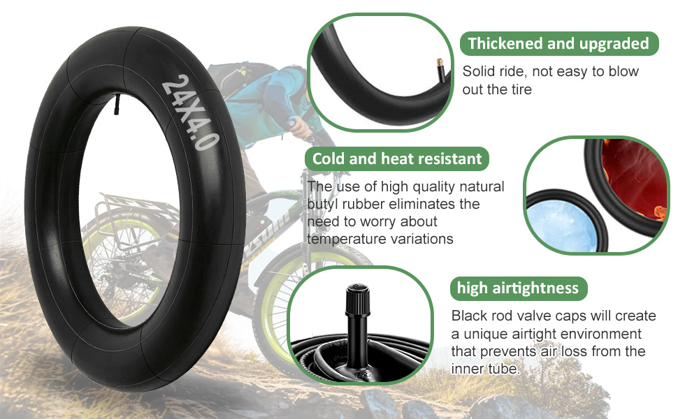 تجربة ركوب مريحة: تم تصميم الأنبوب الداخلي مقاس 24 × 4.0 لتحسين جودة الركوب بشكل عام من خلال توفير امتصاص أفضل للصدمات وثبات الإطارات، مما يضمن رحلة أكثر سلاسة ومتعة على دراجتك.
