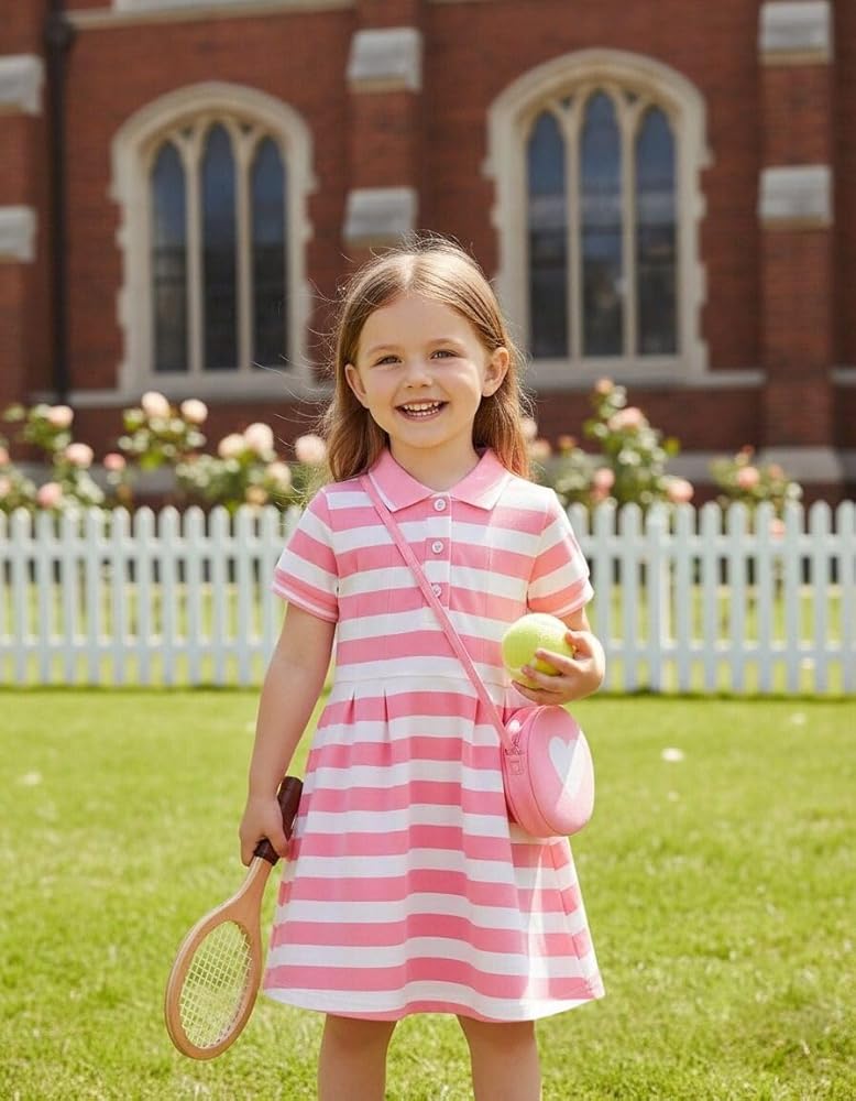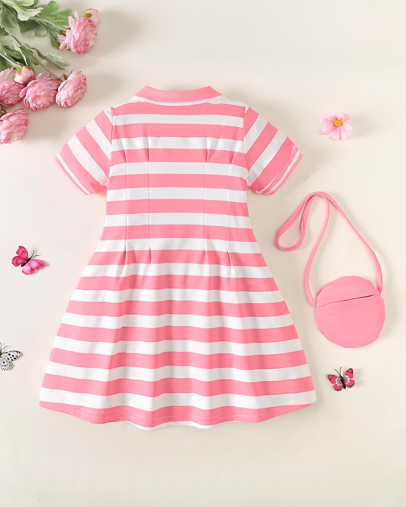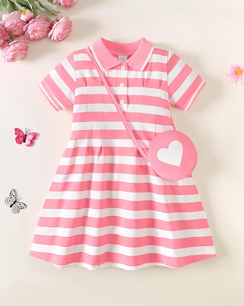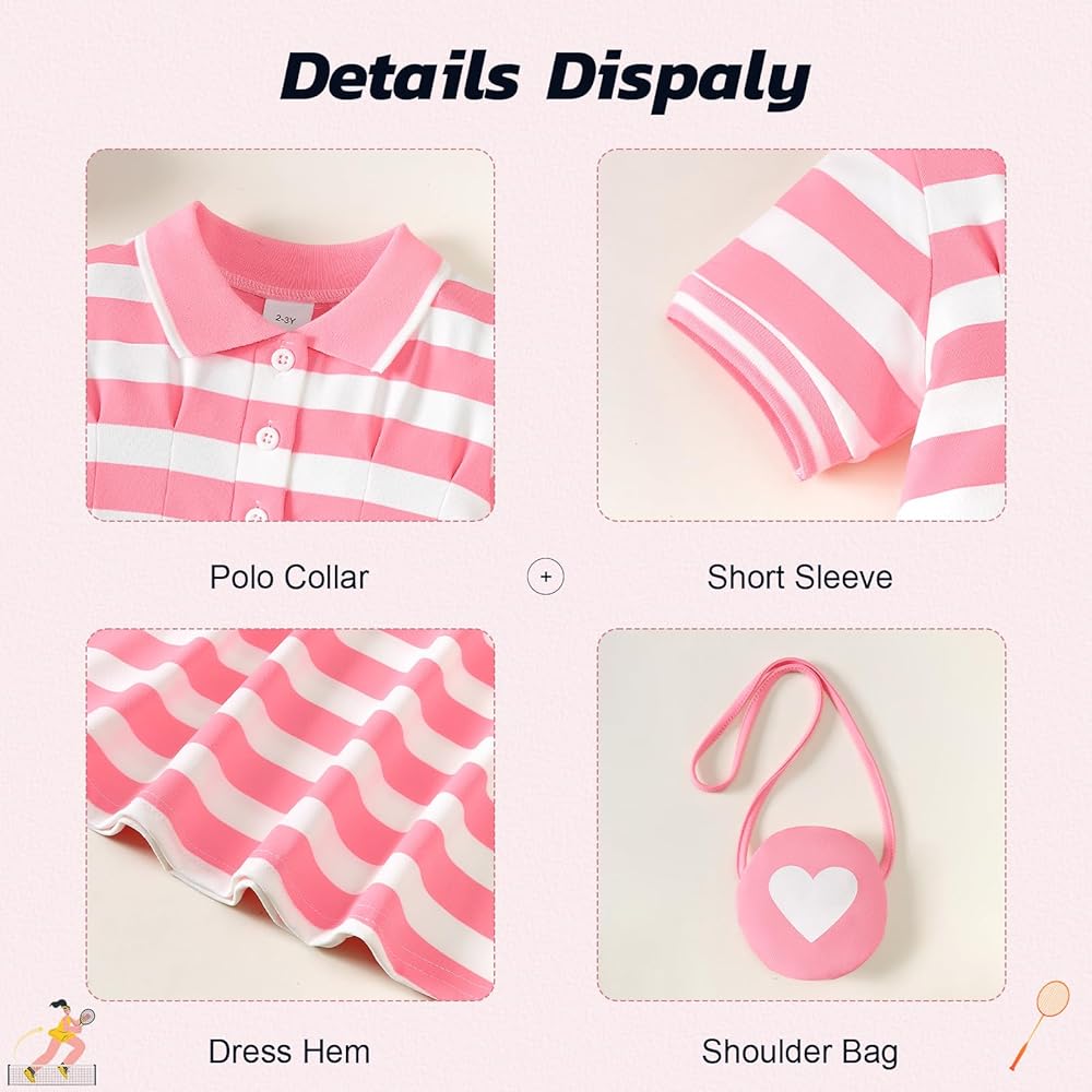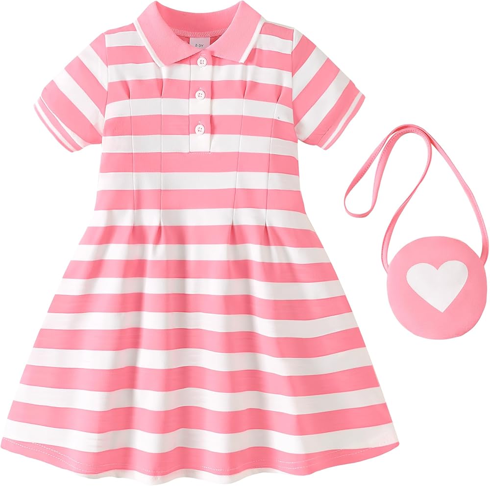 Elevate your little girl's wardrobe with our charming Toddler Girls Polo Dress Set, specially designed for comfort and college style. Crafted from soft, breathable fabric, this short sleeve pleated dress is perfect for warm spring and summer days. The classic polo collar, complemented by front button detailing, adds a touch of sophistication typical of school uniforms while ensuring your child remains chic and trendy. The knee-length design allows for unrestricted movement, making it an ideal choice for playtime and outdoor adventures. Accompanied by a matching cute purse, this ensemble offers a complete spring summer outfit that's perfect for various occasions, including daycare, family gatherings, birthday parties, and more. Available in cheerful colors such as Light Pink, Multicolor, Grey, Purple, Blue, and Pink, and in a range of sizes from 12-18 Months up to 4-5 Years, this polo button dress set is versatile enough to suit any little girl's fashion needs. Whether it's for back-to-school or daily wear, your child will radiate confidence and comfort in our stylish Infant Baby Girl Clothes. Choose the perfect outfit that will have your little one shining bright every day!