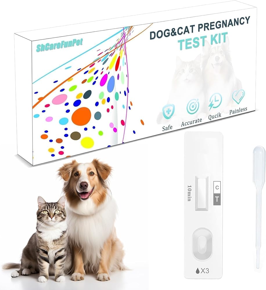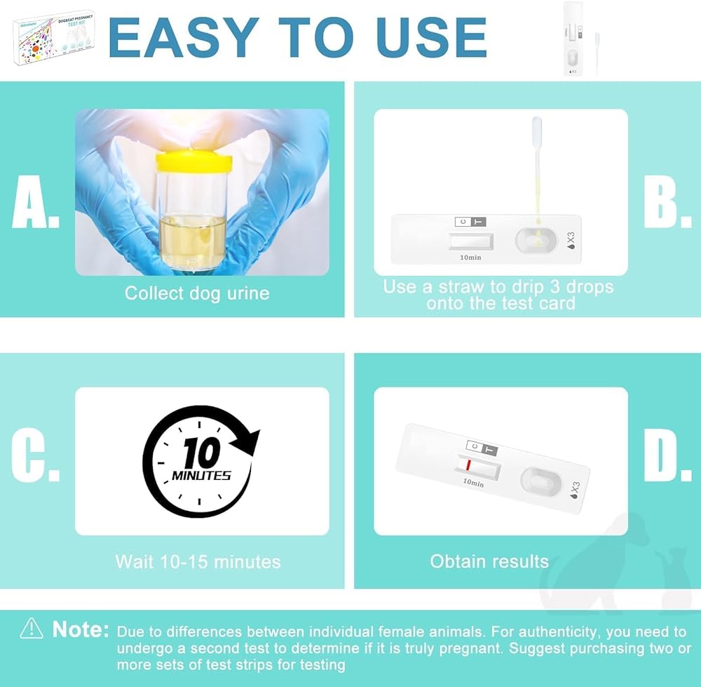 مجموعة أدوات اختبار حمل الحيوانات الأليفة للكلاب والقطط - شريط الكشف عن استرخاء البول في المنزل - دقة 98.8%، غير غازية وخالية من الإجهاد - عبوة واقية محكمة الغلق بشكل فردي (عدد واحد)