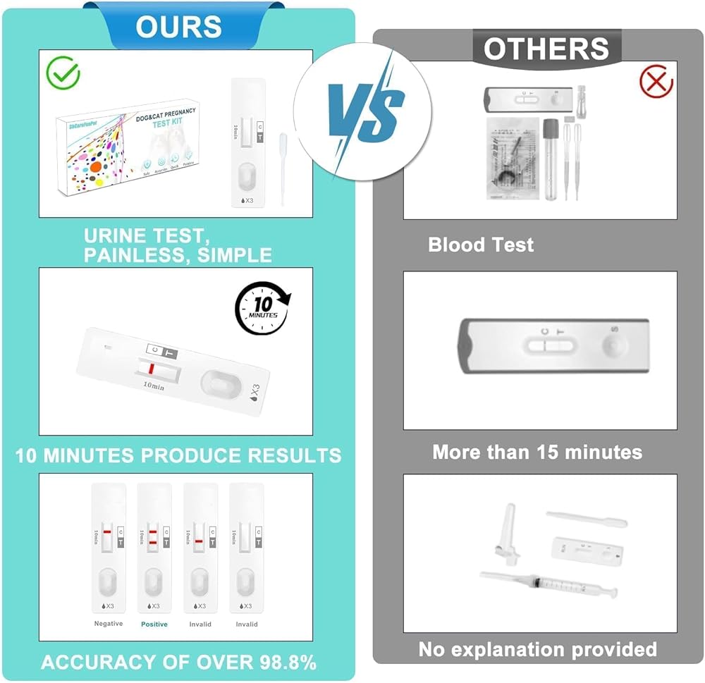 ✨ دقة عالية بنسبة 98.8% ونتائج واضحة، تم تصميم مجموعة الاختبار الخاصة بنا من أجل الدقة، وتوفر دقة تصل إلى 98.8% عند استخدامها في المرحلة المناسبة من دورة حيوانك الأليف. تتميز خطوط النتائج المرئية بسهولة القراءة بشكل لا يصدق، مما يزيل التخمين من العملية ويمنح الآباء الحيوانات الأليفة وضوحًا فوريًا وراحة البال.
