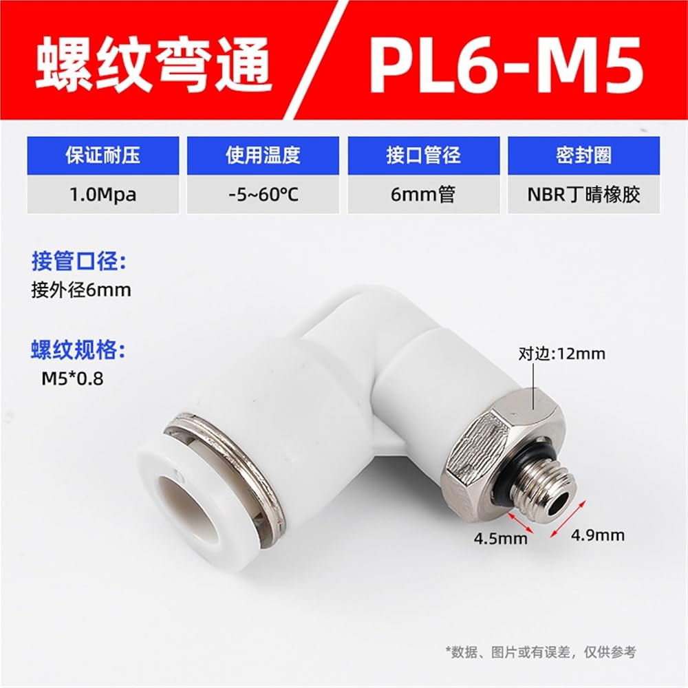 PL أسود/أبيض اتجاهين G- الموضوع على شكل حرف L الزاوية اليمنى الكوع المقابس السريعة موصل هوائي 1 قطعة (PL6-M5)