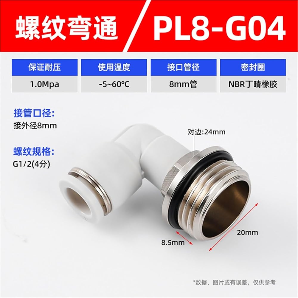 PL أسود/أبيض اتجاهين G- الموضوع على شكل حرف L الزاوية اليمنى الكوع المقابس السريعة موصل هوائي 1 قطعة (PL8-G04)